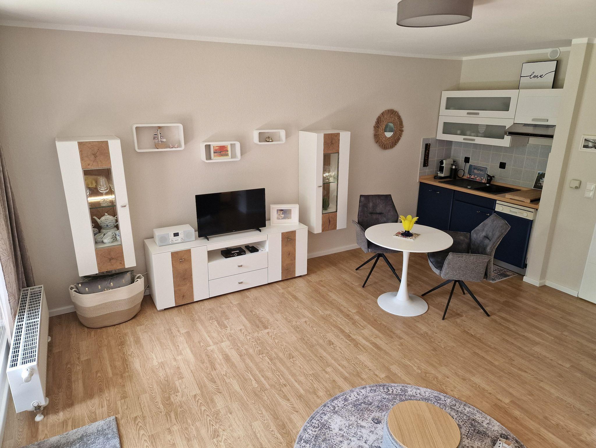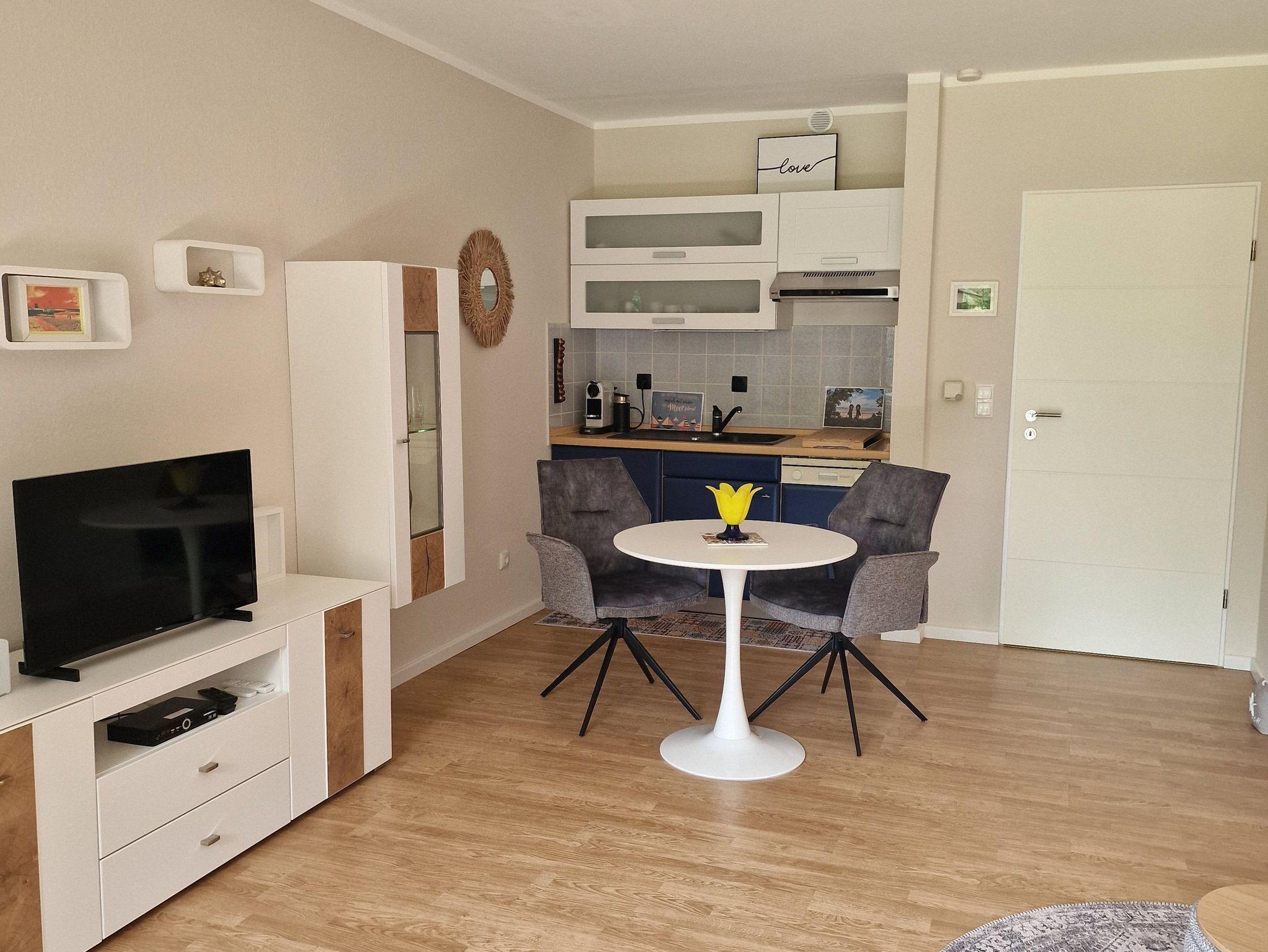 Wohnzimmer: Gemutliches hochwertiges Sofa, Smart-TV mit SAT-Anlage, Internet-Musikanlage mit Bluetooth, Esstisch mit 2 bequemen Dreh-Stühlen, viele Brettspiele, Boulekugeln, Picknickrucksack, etc.