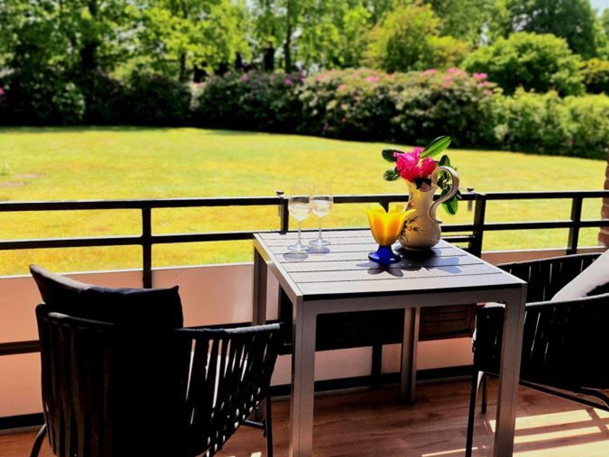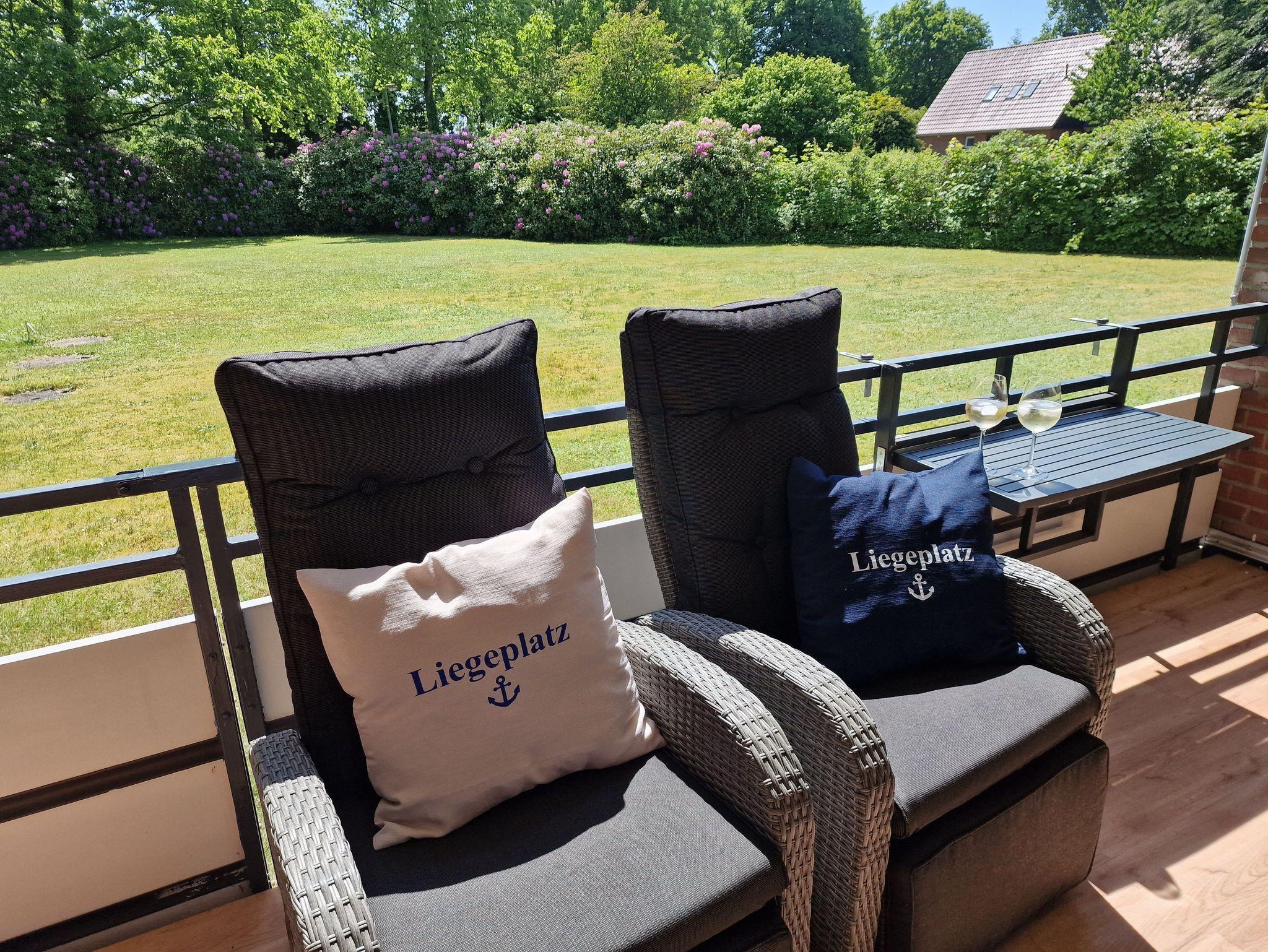 Ausstattung Außen: sonnige, überdachte Loggia (Südausrichtung), Esstisch mit 2 Gartenstühlen, 2 Relaxliegen, toller, ruhiger Gartenblick