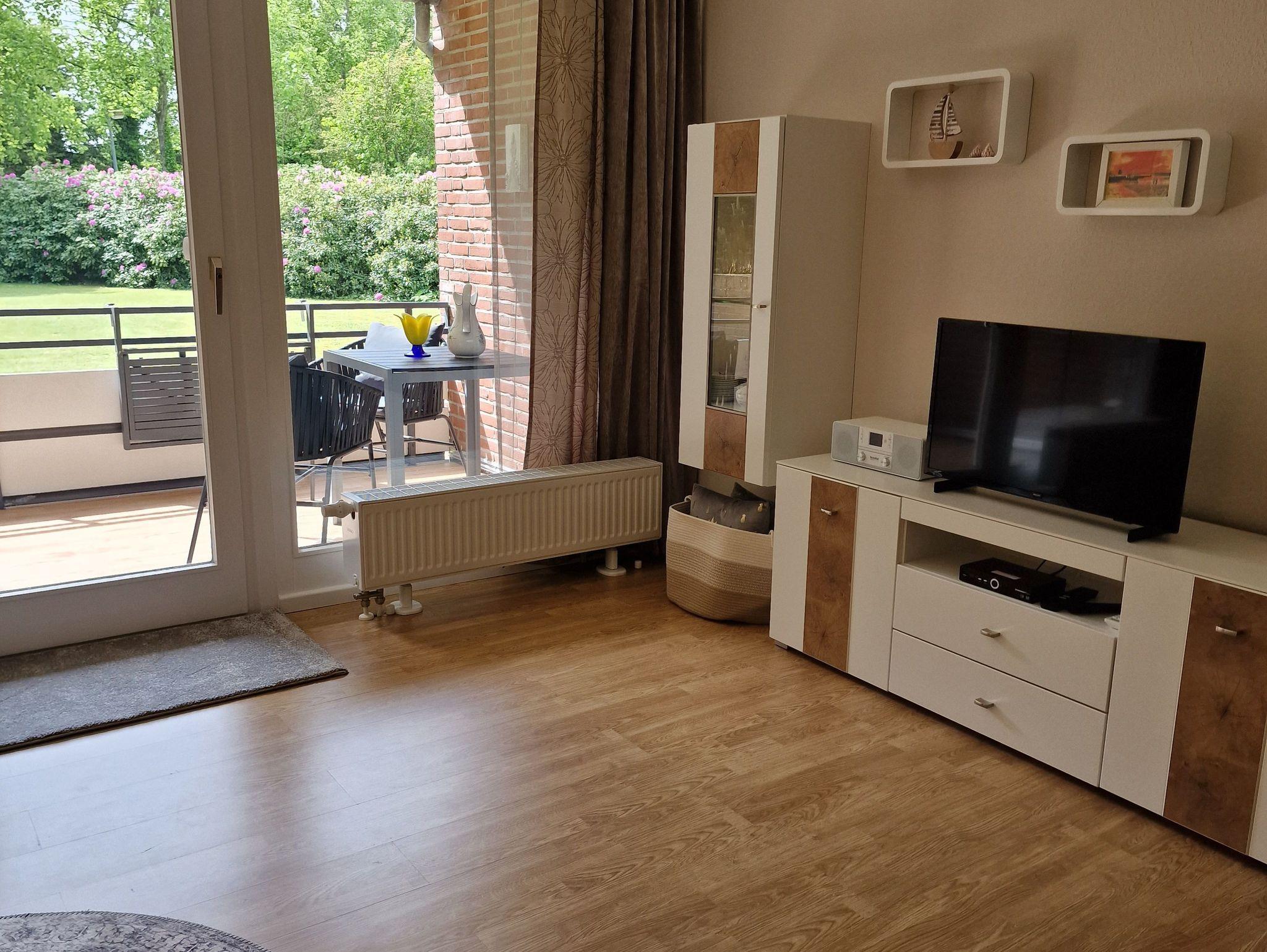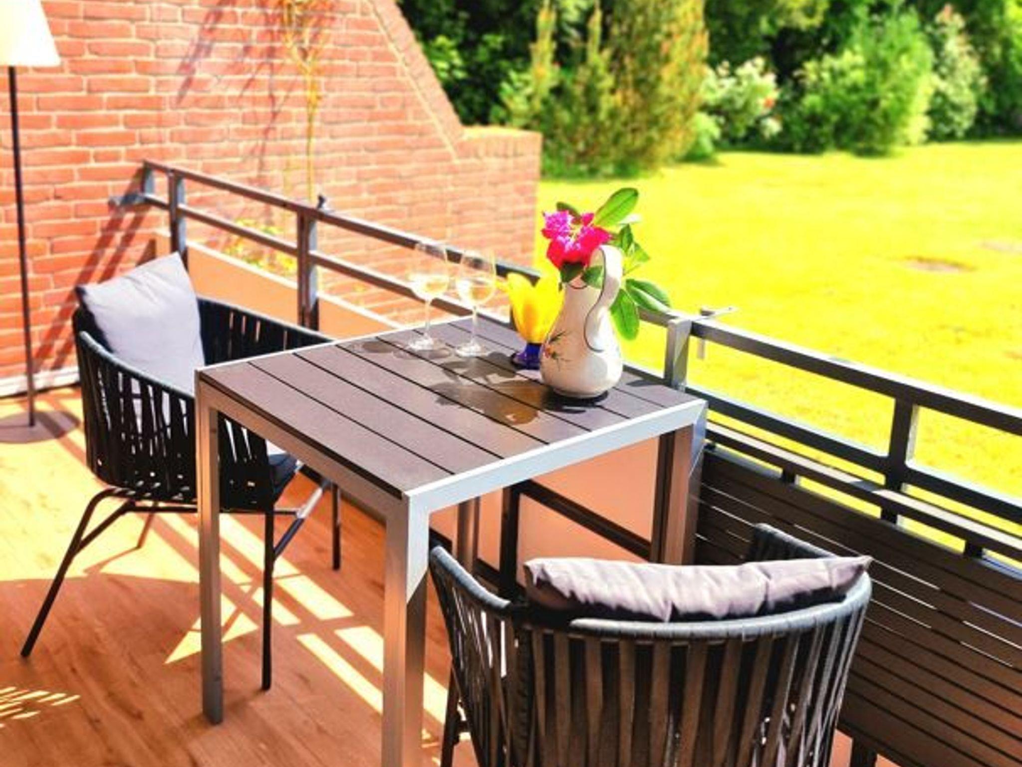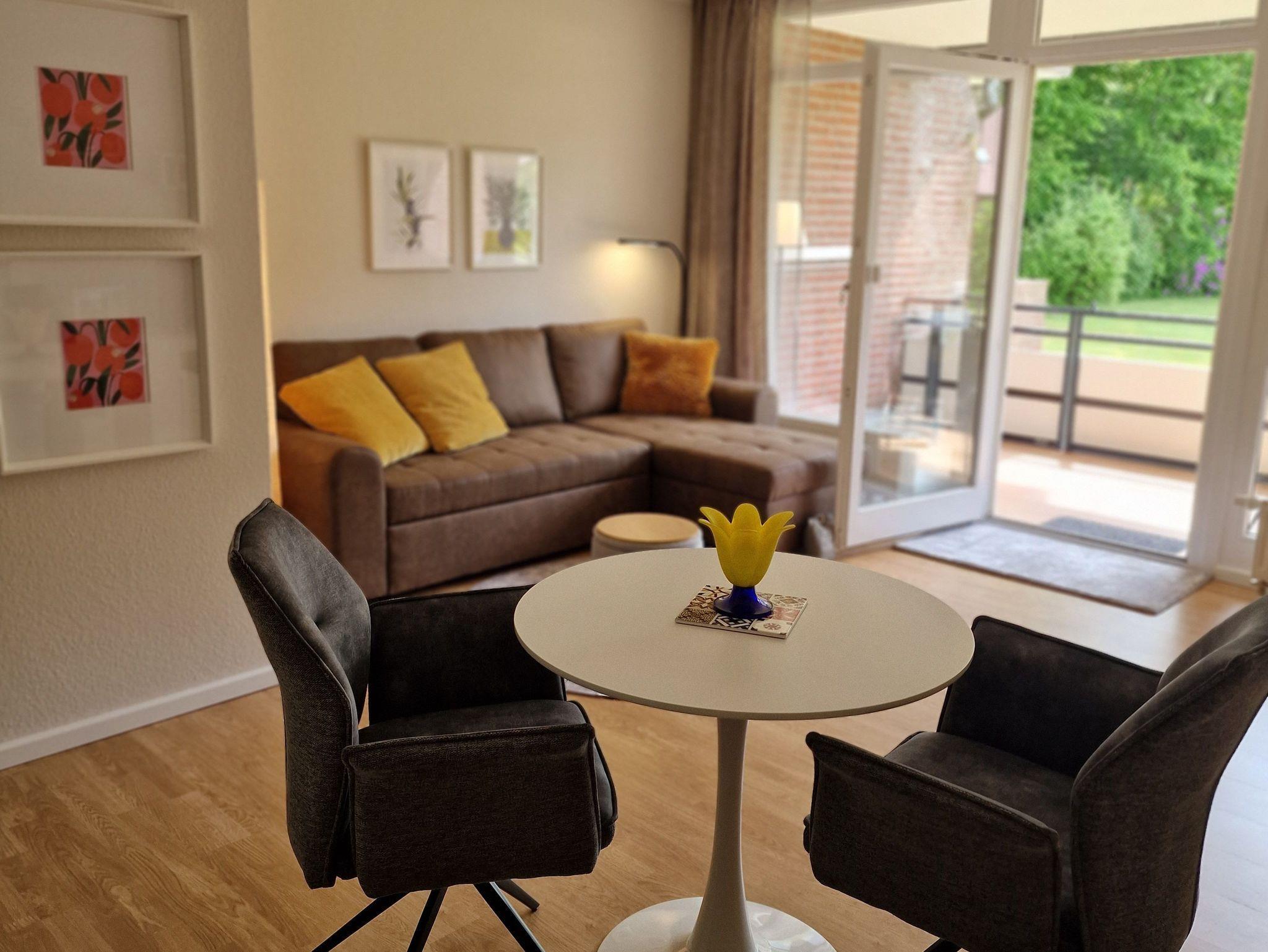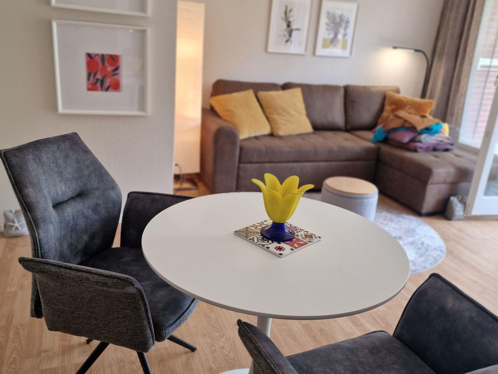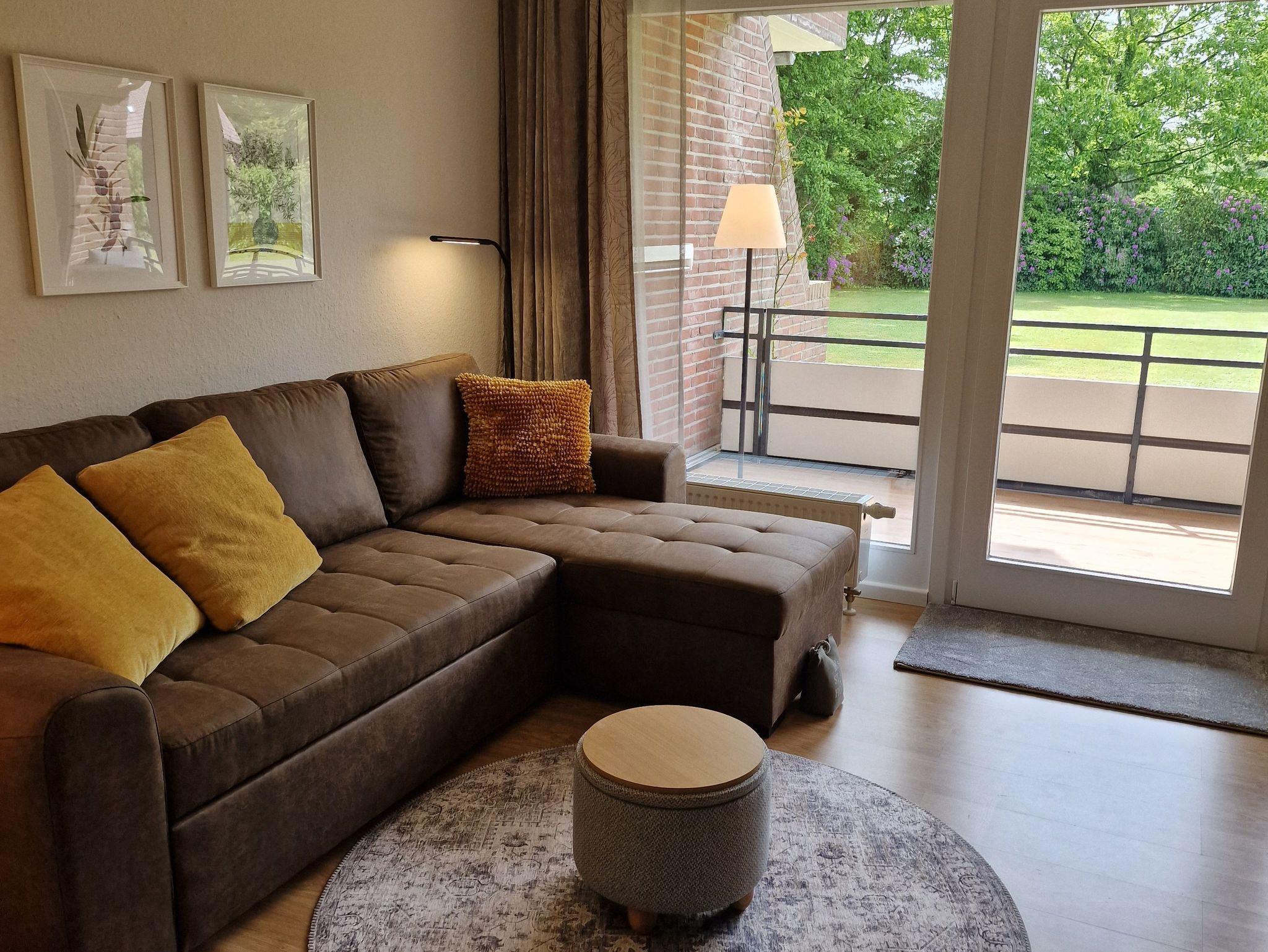 Moderne, lichtdurchflutete Ferienwohnung Frau Hansen nahe Dangaster Strand mit sonniger Loggia und E-Bike-Verleih.