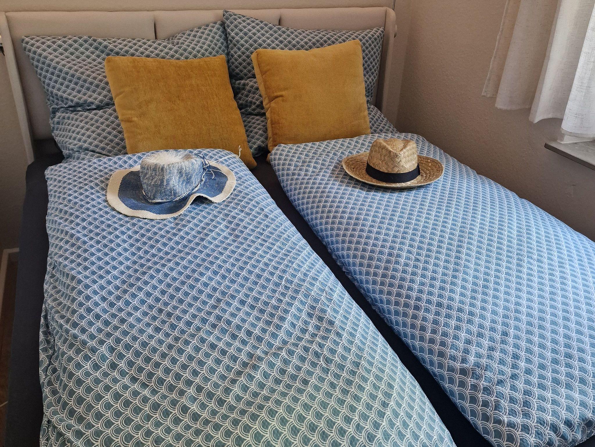 Vom Flur gelangen Sie in Ihr kuscheliges Schlafzimmer. Das Schlafzimmer mit komfortablem Doppelbett mit 7 Zonen Matratze (160x200cm, Einstieg über Fußende) bietet viel Tageslicht, ist aber auch hier schnell und einfach mit Außenrolladen komplett zu verdunkeln.