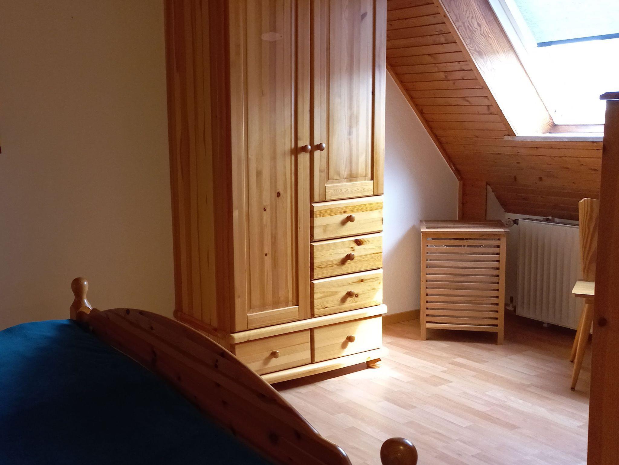 gemütlich eingerichtetes Schlafzimmer, mit einem großen Bett (180 x 200 cm) und viel Stauraum