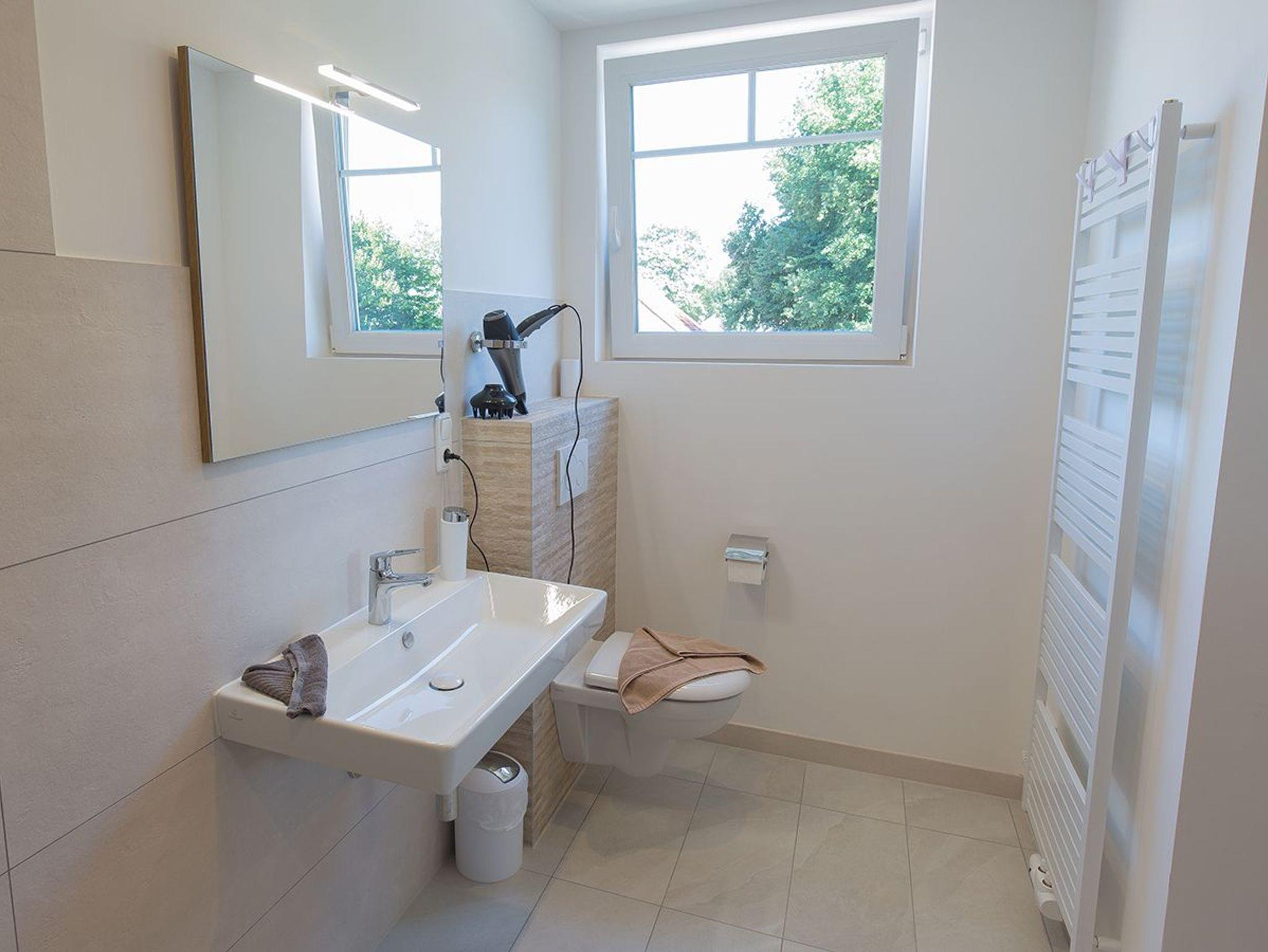 Moin und herzlich Willkommen in unserer Ferienwohnung Fresenhuus 3 im ersten OG rechts. Ihr PKW-Stellplatz liegt unmittelbar vor der Anlage. Im gesamten Objekt wurde Echtholz-Eichenparkett verlegt. Drei Stufen führen Sie zunächst in die Diele mit Garderobe und Ablagefläche und dann in den offenen Wohn/-Essbereich. Nach links gelangen Sie zum großen Esstisch mit angrenzender offener Küchenzeile. Der Blick nach draußen ist unverbaubar auf Felder und Wiesen. Rechts befindet sich das große Sofa mit Recamiere und Schlaffunktion, ein Sessel und ein wandhängender Flachbild-TV. Vom Wohnzimmer und dem Esszimmer führt Sie eine Tür zu den beiden Schlafräumen; komfortabel ausgestattet mit zwei großen Doppel-Boxspringbetten und Platz für Kleidung. Von jedem Schlafzimmer aus gelangen Sie in ein eigenes modernes Duschbad mit Fußbodenheizung und ebenerdiger Walk-In-Regendusche. Genießen Sie den tollen Garten, die unverbaute Aussicht auf Felder und Wiesen Richtung Deich sowie die finnische Panoramasauna.