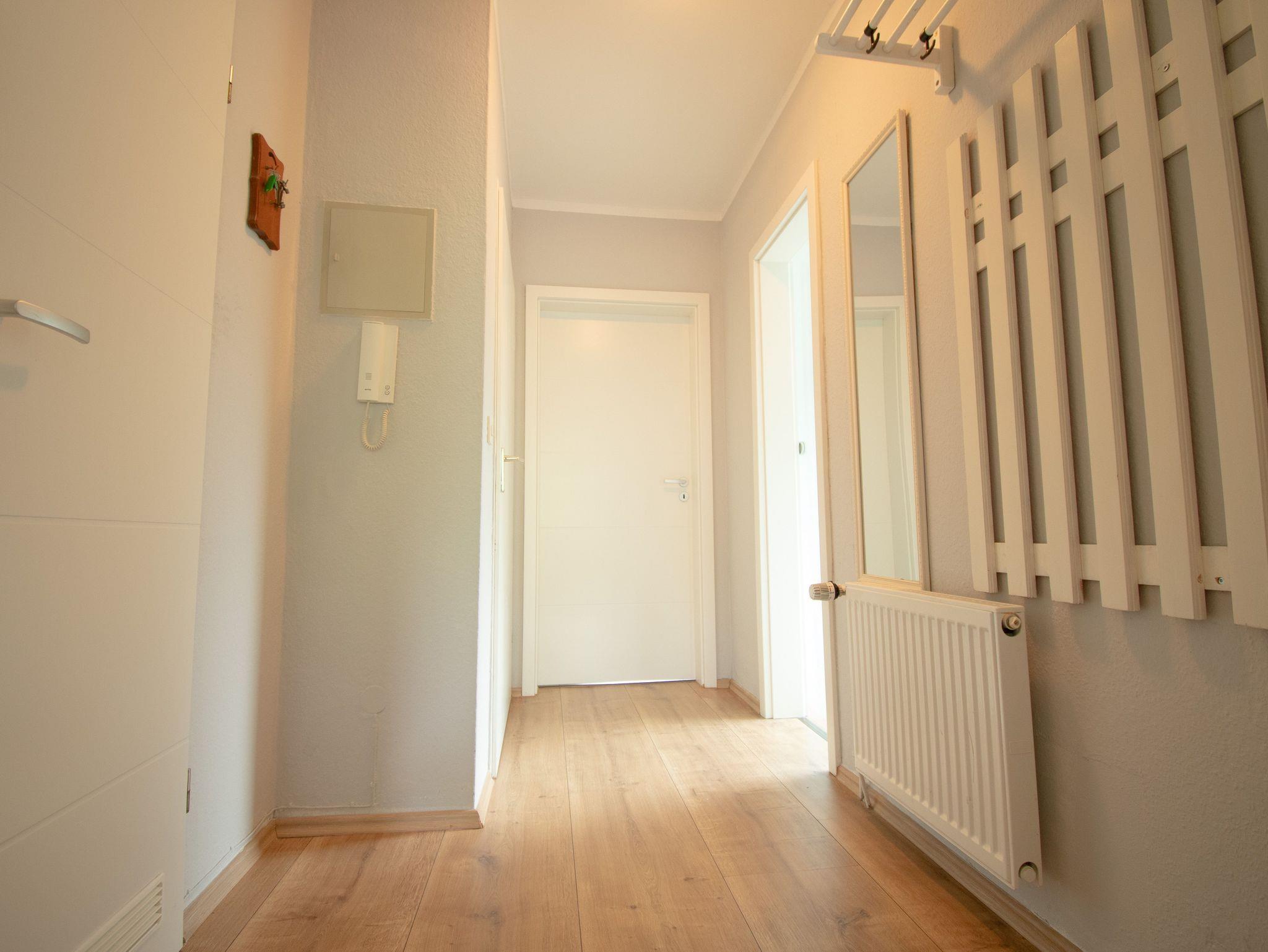 Moin Moin in unserer schicken Wohnung Watt´n Blick auf der zweiten Etage in einem Mehrparteienhaus im Herzen von Dangast. Hier verbringen Sie ihren Urlaub sehr ruhig in einer reinen Wohnstraße und doch strandnah. Durch den großzügigen Flurbereich gelangen Sie ins Wohn/Esszimmer mit Küchenzeile und gegenüber einem Theken-Essplatz. Hier befindet sich auch der schicke Wohnbereich mit Ausgang zum sichtgeschützten großen Balkon mit Mobiliar und Blick ins Grüne. Genießen Sie die frische friesische Luft. Die Wohnung hat zwei Schlafräume - der erste ist ausgestattet mit Boxspringdoppelbett und Kleiderschrank, der zweite bietet ein Tandembett - unten ausziehbar . Das schicke Duschbad hat einen geräumigen Waschplatz mit - einer kleinen - Duschkabine aber einem flachem Einstieg.