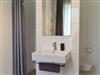 Bodentiefe Dusche, Waschtischanlage mit Spiegel, Föhn, WC,