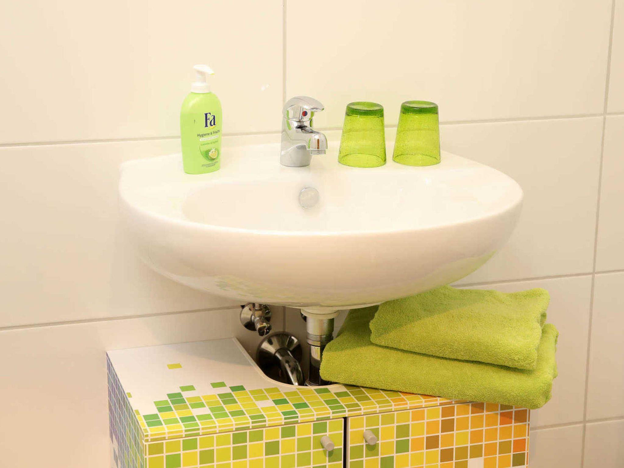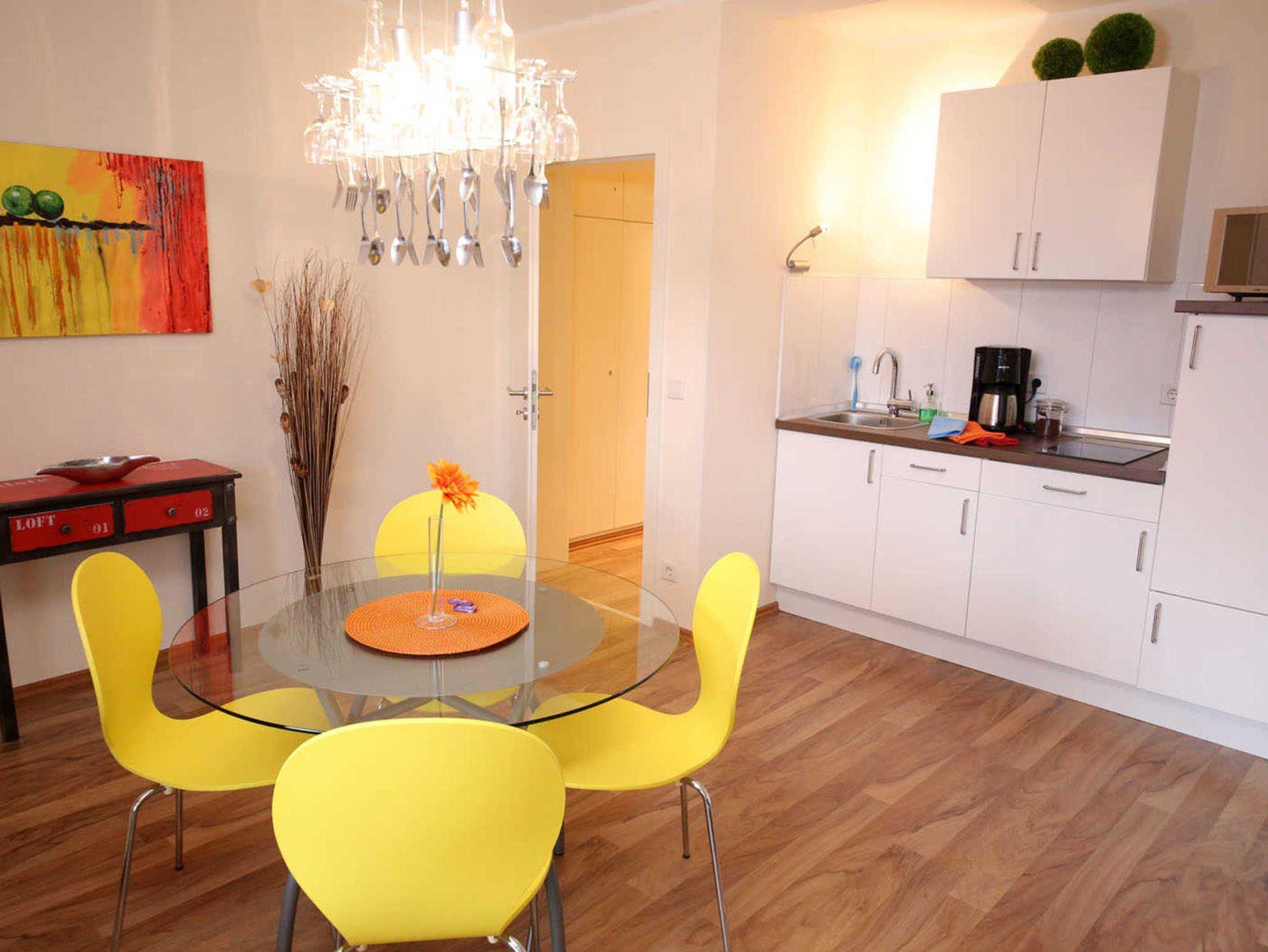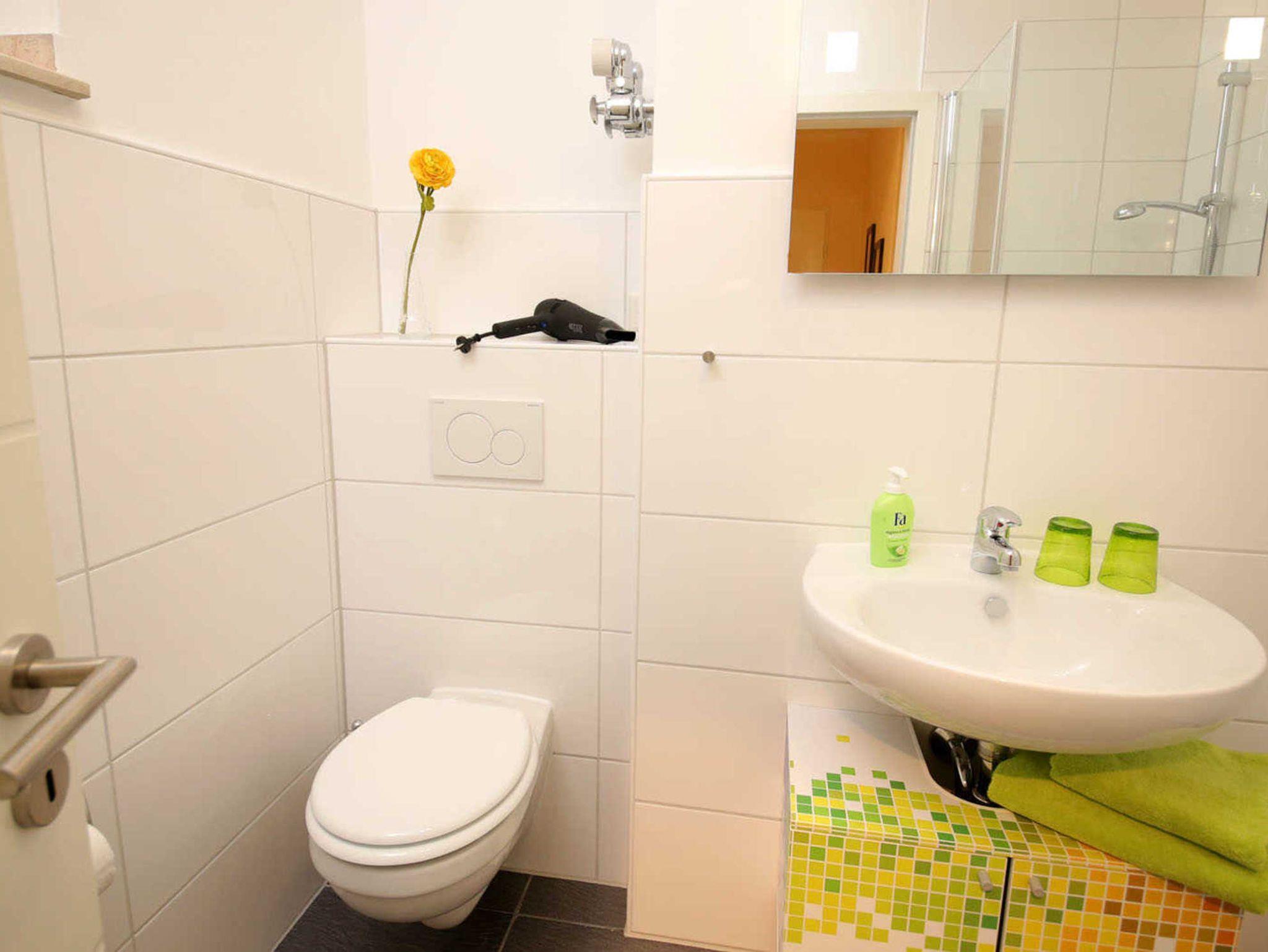 Der Koch-/Ess-Bereich wurde mit einer modernen Küchenzeile ausgestattet (u. a. Mikrowelle mit Grillfunktion), das moderne Bad u.a. mit Dusche/WC und Handtuchheizung.