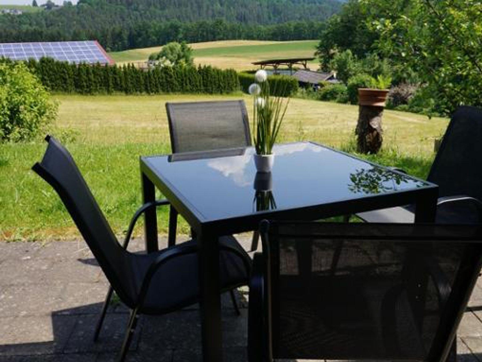 Auf der Terrasse mit Ausrichtung nach Nordost haben Sie eine unverbaute Aussicht ins Grüne und können das Frühstück in der Morgensonne genießen.