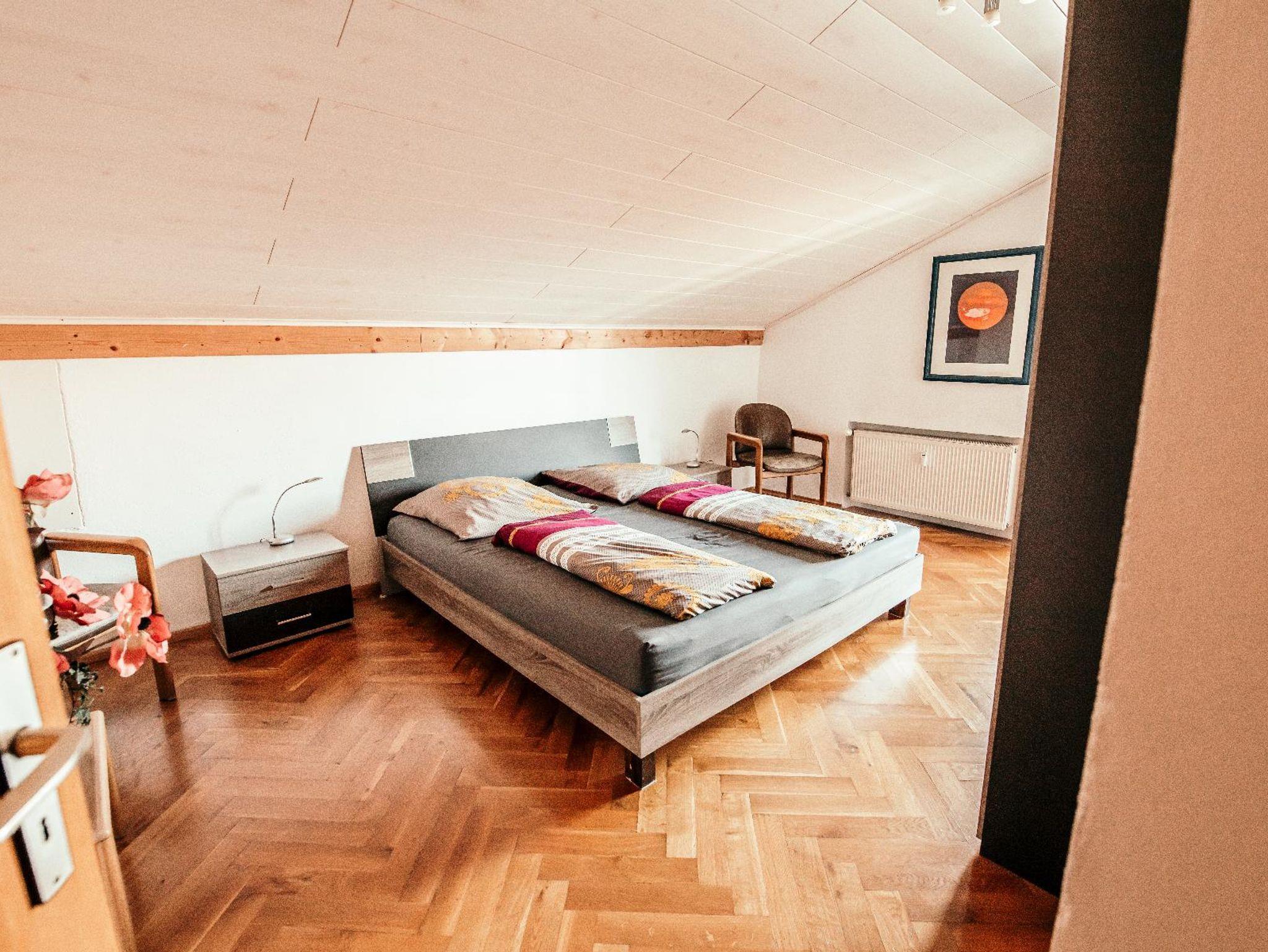 Unsere Ferienwohnung befindet sich in schöner Ortsrandlage von Viechtach, im Ortsteil Schlatzendorf im 1.OG, Haus Nr. 38. Die Wohnung hat ca. 120qm Wohnfläche, ausgestattet mit 3 Schlafzimmern für max. 6 Personen.