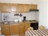 Küchenaussattung und zwei separate Schlafzimmer. Eines mit Doppelbett, Schlafzimmerschrank und Nachtkästchen im klassischen Ehebettkonzept, eines mit einzeln stehenden Betten oder Stockbetten für Kinder.
