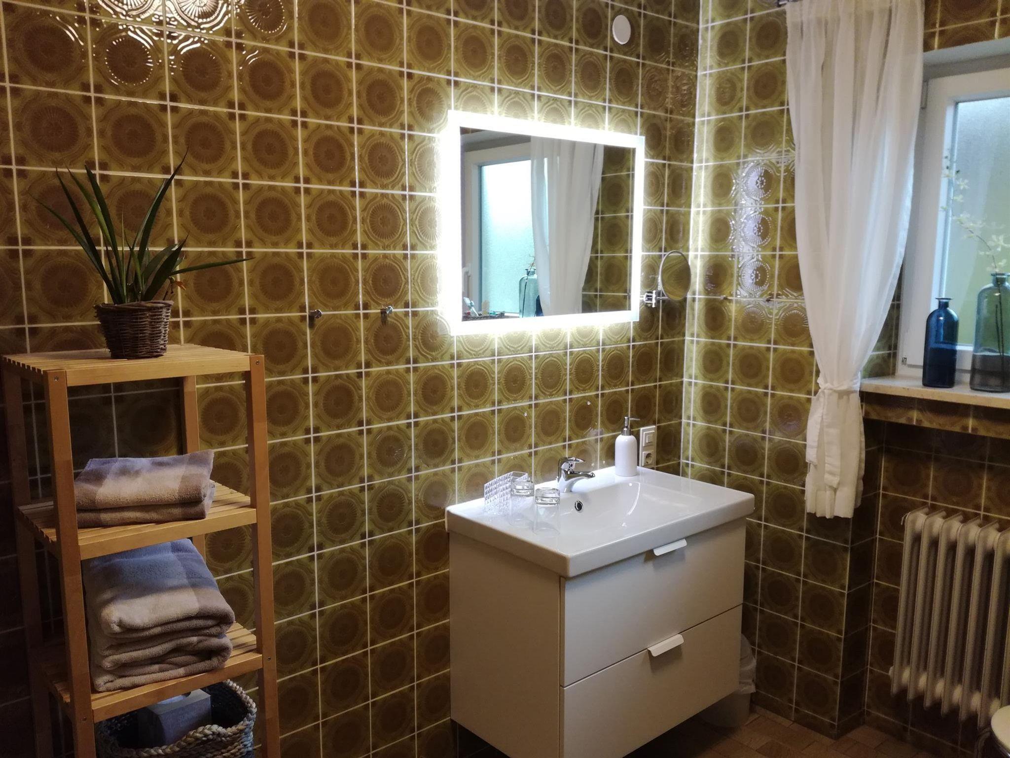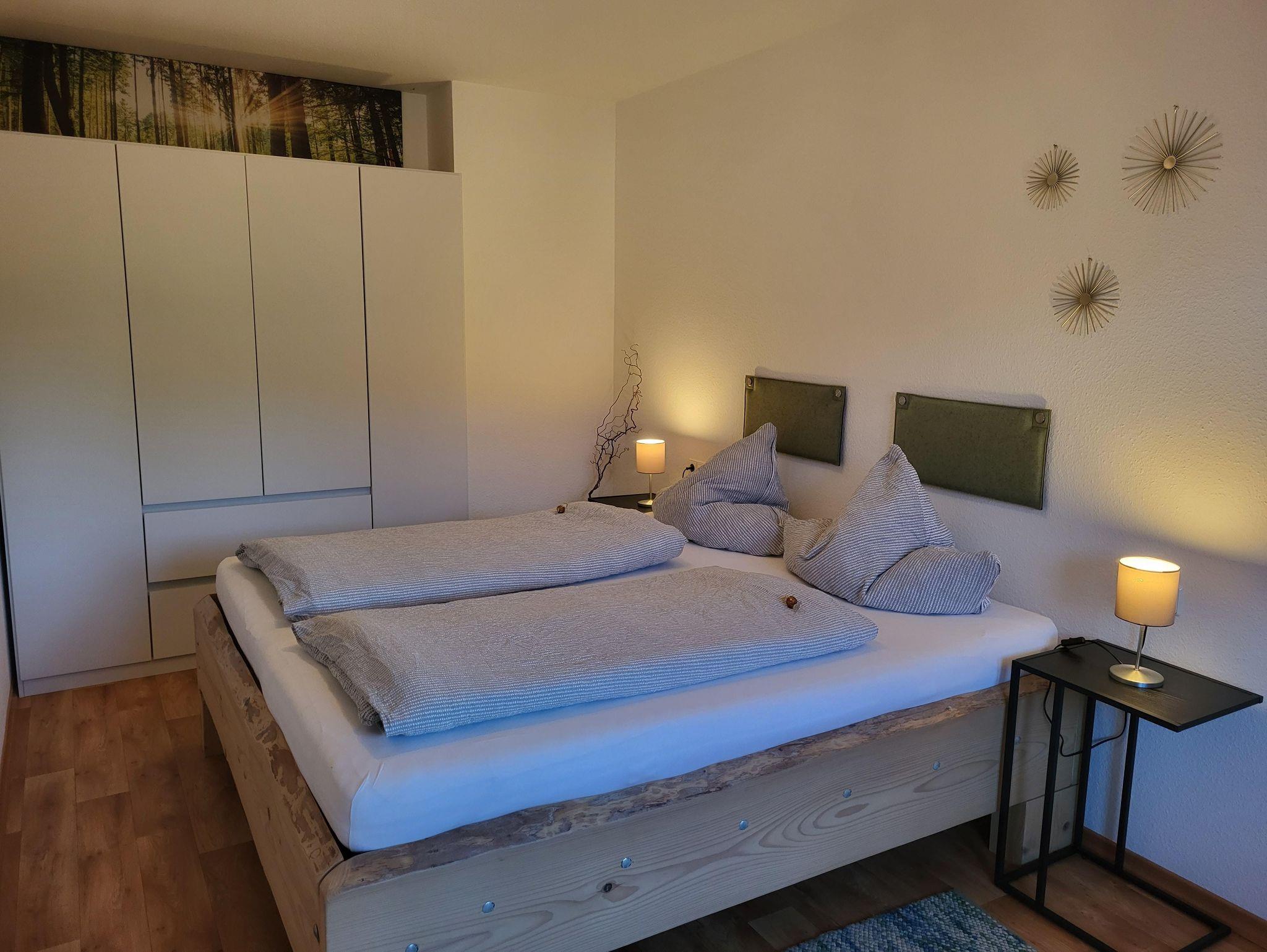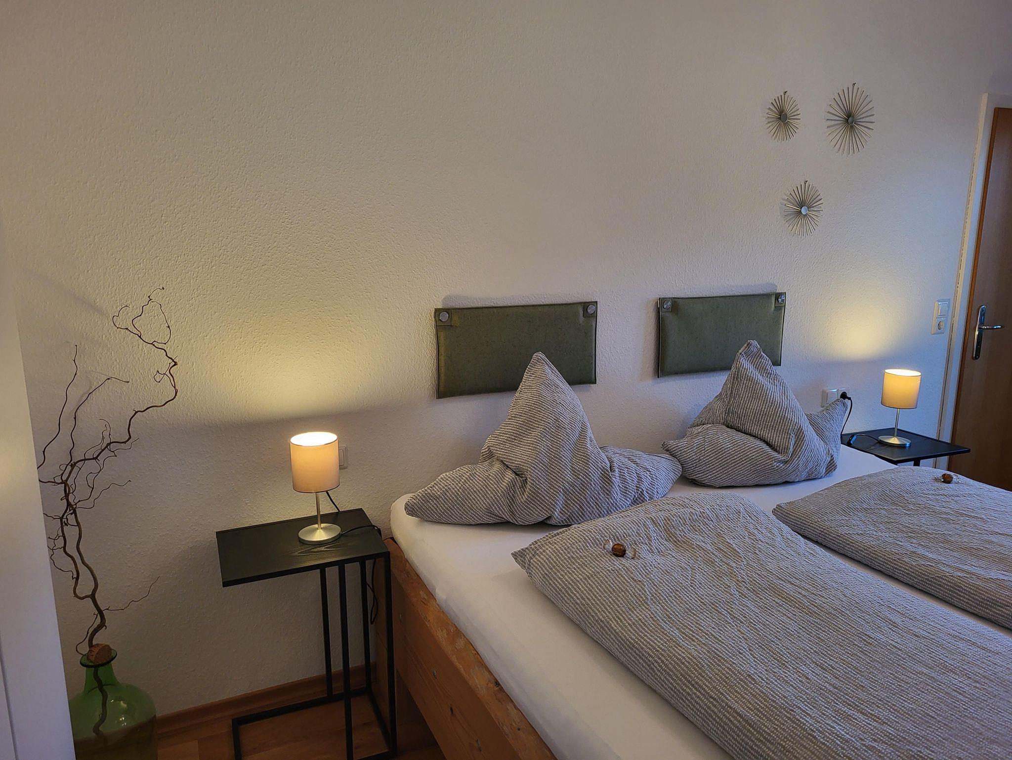 Auf Wunsch kann auch ein weiteres Zimmer mit Doppelbett außerhalb der abgeschlossenen Wohnung zusätzlich gebucht werden, beispielsweise für ein größeres Kind, die Oma oder als Schnarcher-Ausweichzimmer. Der Preis für dieses separate Zimmer beläuft sich auf 20,- € je weitererem Erwachsenen und 10,- € für jedes weitere Kind.