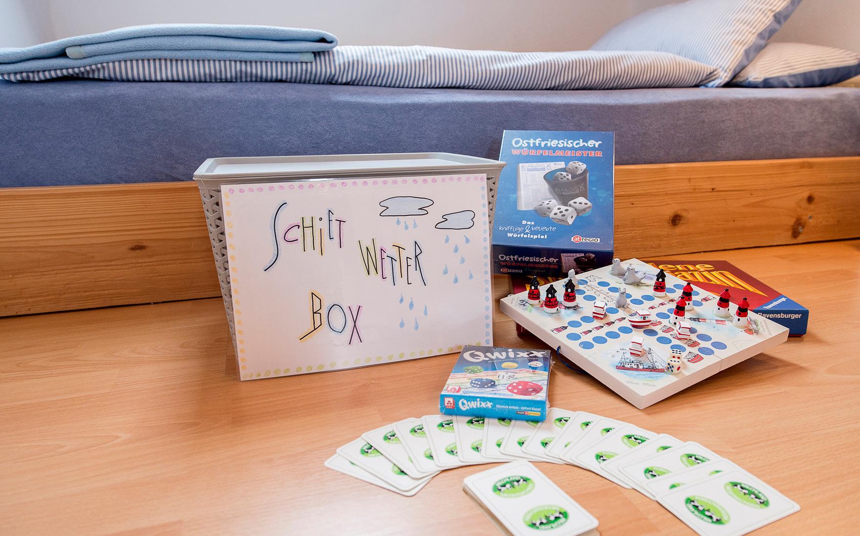 Und bei schlechtem Wetter stellen wir Ihnen auf Wunsch gerne unsere "Schiet-Wetter-Box" zusammen.
