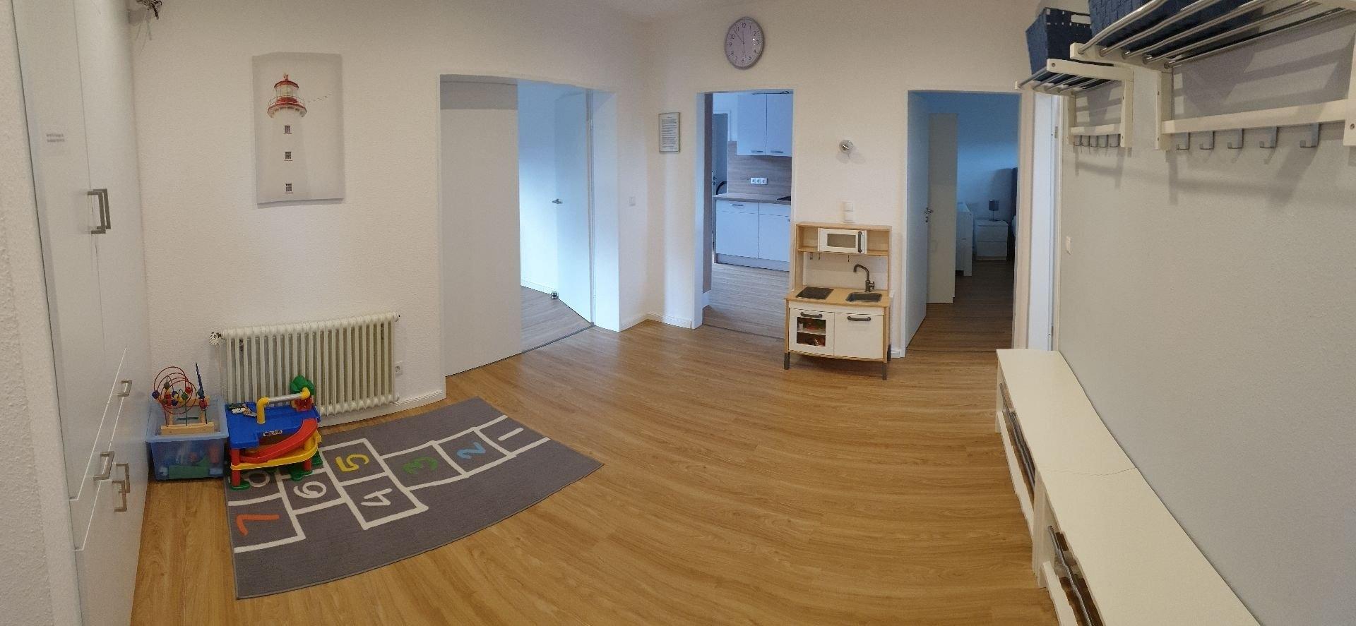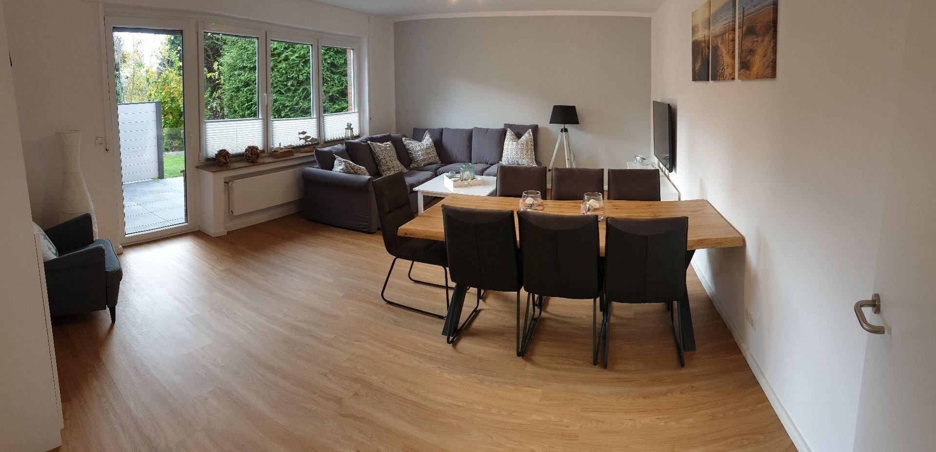 Moderne Ferienwohnung mit 97 m² in Wangerland, nahe Strand, Hafen und Einkaufsmöglichkeiten, ideal für Familien und Gruppen.