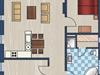 Zwei Schlafräume und der großzügige Wohnbereich mit offener Küche heißen Sie herzlich willkommen.