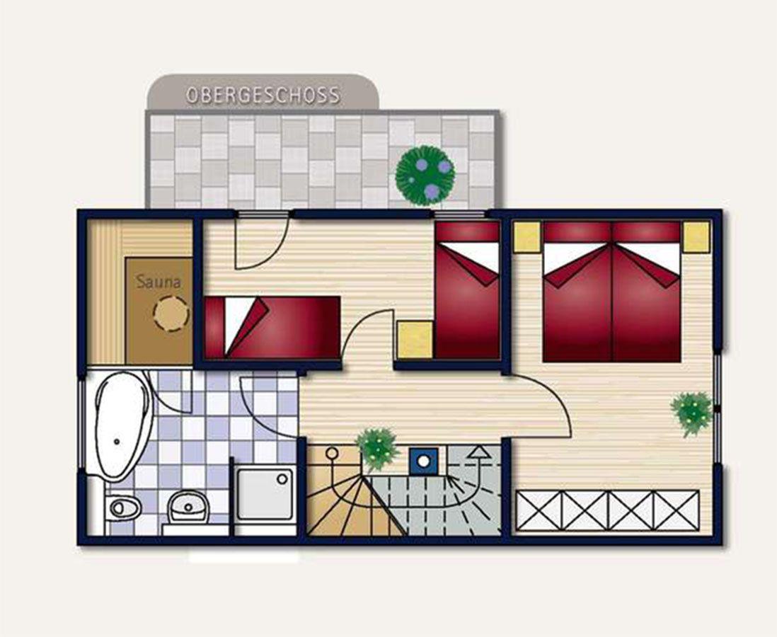 Die erste Etage wird Sie begeistern: Zwei komfortable Schlafzimmer mit einem 180x200m Doppelbette (2x 90x200 Matratzen) sowie 2 Einzelbetten (90x200 Matratzen) und ein großzügiges Bad mit ebenerdiger Dusche, Badewanne und Sauna laden dazu ein, stürmische oder regnerische Tage zu genießen. Tauchen Sie ein in Ihren privaten Wellnes stempel und lassen Sie die Seele baumeln.
