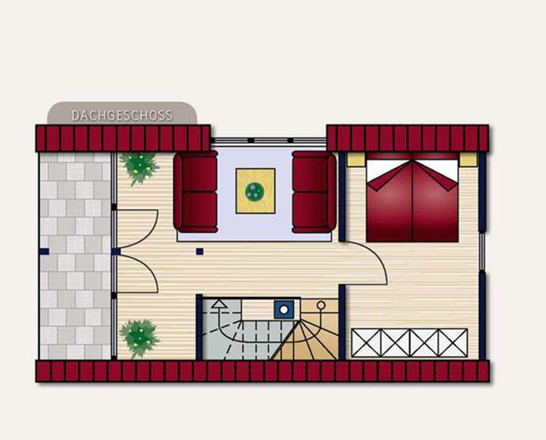 Das Dachgeschoss mit Loggia ist ein wunderbarer Rückzugsort. Hier genießen Sie den Blick auf den Strand und die Nordsee und finden in der gemütlichen Sofaecke Ihren persönlichen Entspannungsmoment. Ein drittes Schlafzimmer mitr einem 180x200cm Doppelbett (2x 90x200 Matratzen) sorgt für Flexibilität und Komfort, während die Fußbodenheizung im gesamten Haus wohlige Wärme an kühlen Tagen schenkt. Für Familien stehen auf Wunsch ein Kleinkinderreisebett mit Matratze und ein Hochstuhl bereit.