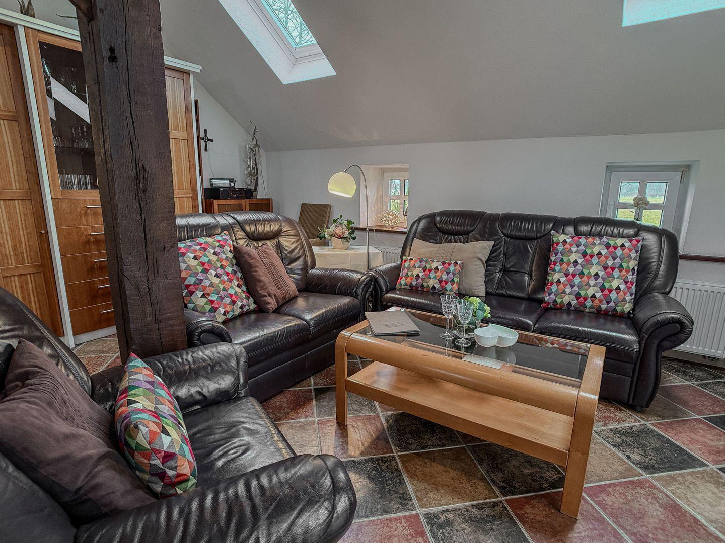 Von hier aus gelangen Sie direkt in den Garten und auf die Terrasse. Ein Strandkorb lädt zum Träumen, Lesen oder einfach zum Genießen der Natur ein.