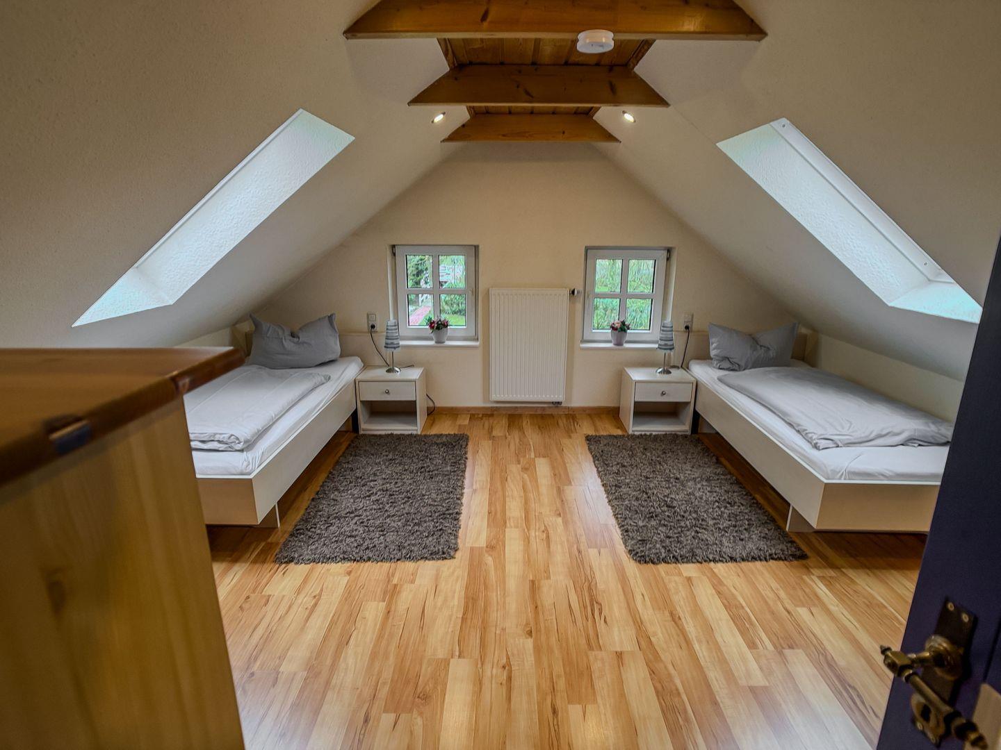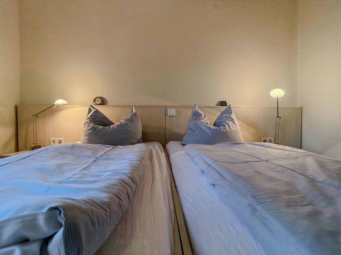 Im Obergeschoss finden Sie ein Gäste-WC sowie ein weiteres Schlafzimmer mit zwei Einzelbetten.