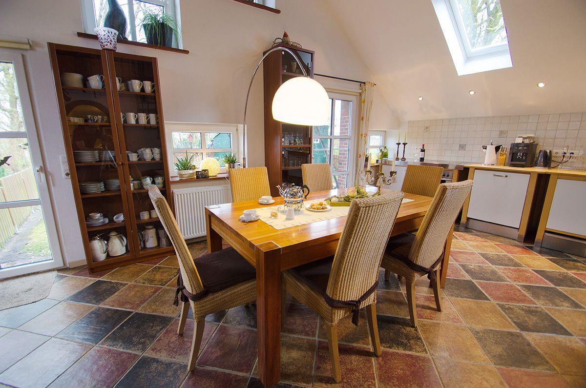 Idyllisches Landhaus Haus Hölle am Wangermeer mit großem Garten und Kamin für erholsame Stunden in der Natur.