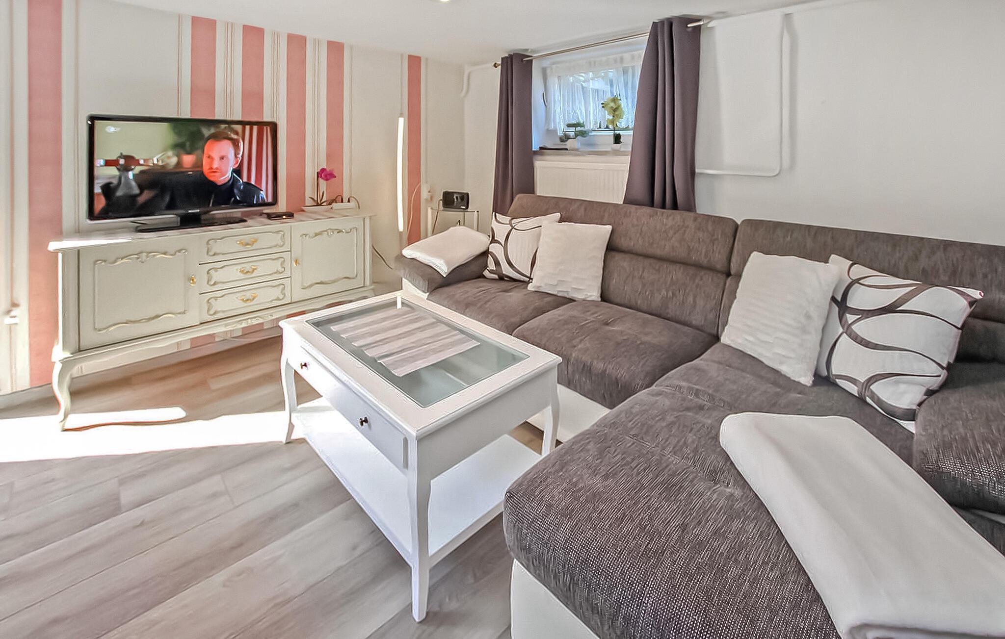 Nur ca. 100 m vom Badestrand und der Uferpromenade an der Müritz entfernt, befindet sich im Souterrain des Eigentümer-Wohnhauses die 2021 komplett modernisierte Ferienwohnung für zwei Personen. Die Altstadt von Waren (Müritz) mit Yachthafen, Einkaufsmöglichkeiten und dem Naturerlebniszentrum Müritzeum ist in wenigen Autominuten oder auch zu Fuß (ca. 20 min) schnell erreicht. Auf dem 2.000 qm großen Wohngrundstück befinden sich zwei weitere Ferienobjekte. (Ferienhaus DZV247, Ferienbungalow DZV444). Die Nichtraucher-Ferienwohnung hat einen separaten Eingang, wird zentral beheizt und ist modern eingerichtet mit einem Wohnraum (Polstermöbel, Flachbild-TV, Radio), offenem Küchenbereich (Ceran-Kochfeld, Kühlschrank, Mikrowelle, div. Küchenkleingeräte), einem Schlafraum (Doppelbett, Schrank) sowie einem großen Bad (ebenerdige Dusche, WC). Außerdem stehen eine kleine Terrasse, Fahrradunterstellmöglichkeiten, ein Parkplatz sowie W-LAN zur Verfügung. Im Gesamtpreis sind die Endreinigung, Wasser- und Energiekosten enthalten. Bettwäsche und Handtücher sind bitte selbst mitzubringen. Vor Ort zu zahlen: Kurtaxe. Haustiere sind in der Wohnung nicht erlaubt.