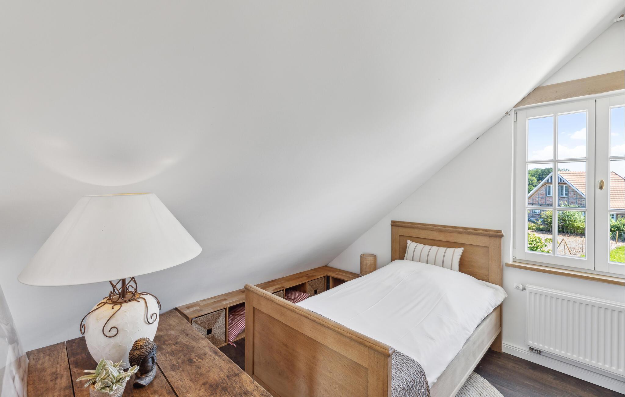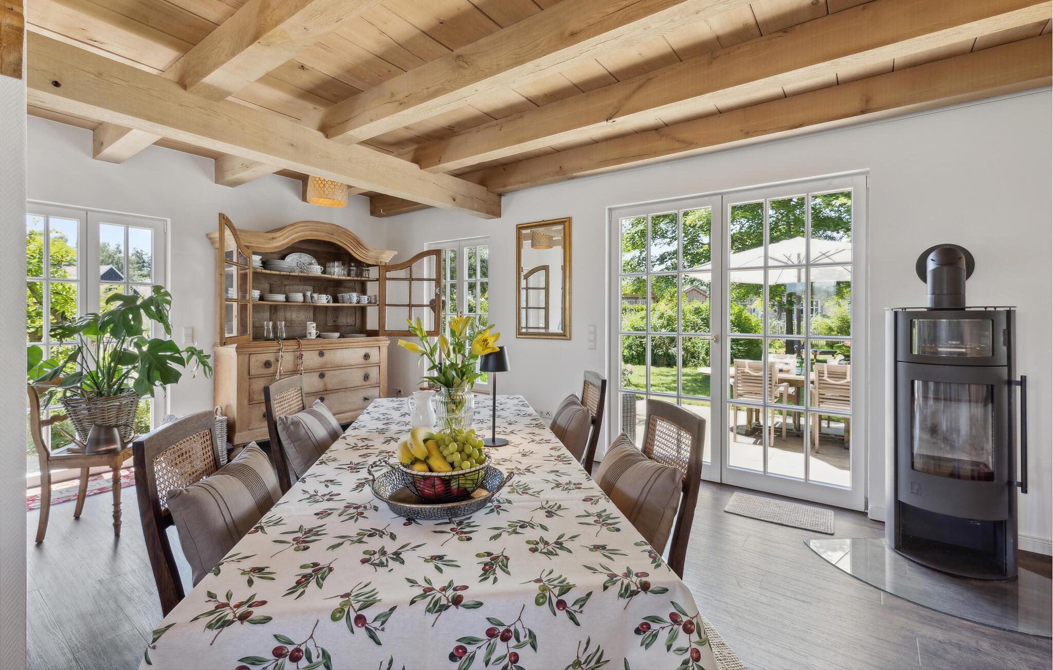 Gönnen Sie sich eine Auszeit vom Alltag in diesem schönen, stilvollen und geräumigen Ferienhaus. Das sichtbare Fachwerk, der authentische Holzofen und die hellen Räume mit der wohnlichen Einrichtung schaffen eine Wohlfühlatmosphäre, die ihresgleichen sucht. Nehmen Sie die Mahlzeiten gemeinsam mit schönem Blick in den Garten durch aparte Sprossenfenster ein und sorgen Sie mit einem Feuer im Kaminofen für eine gemütliche Stimmung an kühlen Abenden.