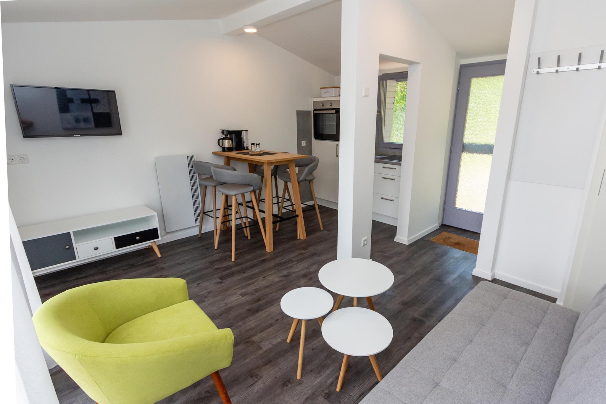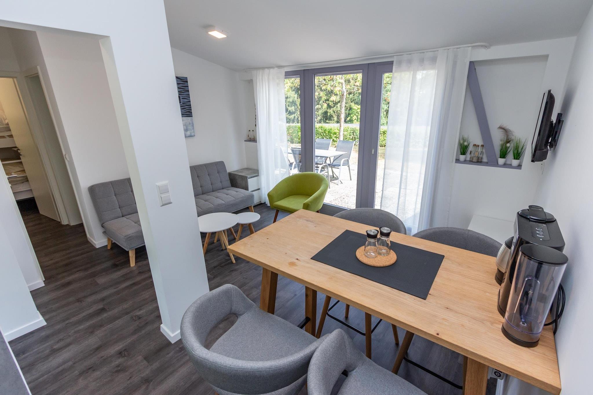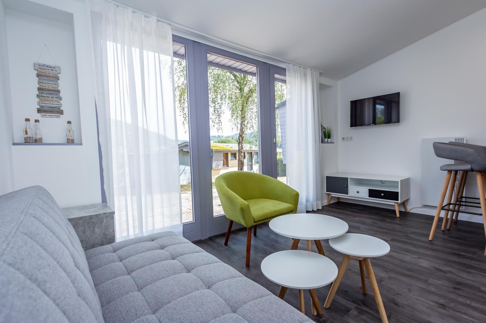 Dieser einladende Bungalow mit 2 Schlafzimmern für bis zu vier Gäste liegt eingebettet in die Hügellandschaft von Waxweiler und bietet einen ruhigen Rückzugsort mit sonniger Terrasse und voll ausgestatteter Küche. Das gemütliche Hauptschlafzimmer und das Zimmer mit Etagenbett machen ihn ideal für Familien, während der geräumige Wohnbereich und das moderne Badezimmer für Komfort während Ihres gesamten Aufenthalts sorgen. Ob Selbstverpflegung oder Restaurantbesuch – die Gegend bietet zahlreiche kulinarische Möglichkeiten. Waxweiler liegt im malerischen Deutsch-Luxemburgischen Naturpark und ist ein charmantes Dorf nahe dem Dreiländereck Deutschland, Belgien und Luxemburg. Es ist ein Paradies für Naturliebhaber und Aktivurlauber. Wander- und Radwege beginnen direkt vor der Tür. Im Sommer. Familien werden das Indoor-Spielhaus, den Outdoor-Spielplatz und die saisonale Hüpfburg zu schätzen wissen. Bitte beachten Sie: Der Bungalow ist ausschließlich für private und touristische Aufenthalte reserviert und steht Bau- oder Montagearbeitern nicht zur Verfügung.