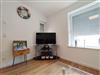 Wohnzimmer mit Sitzecke und Fernseher. Die Wohnung ist mit einer Fußbodenheizung ausgestattet (Flur und Schlafzimmer zwei sind mit Heizkörpern ausgestattet.)