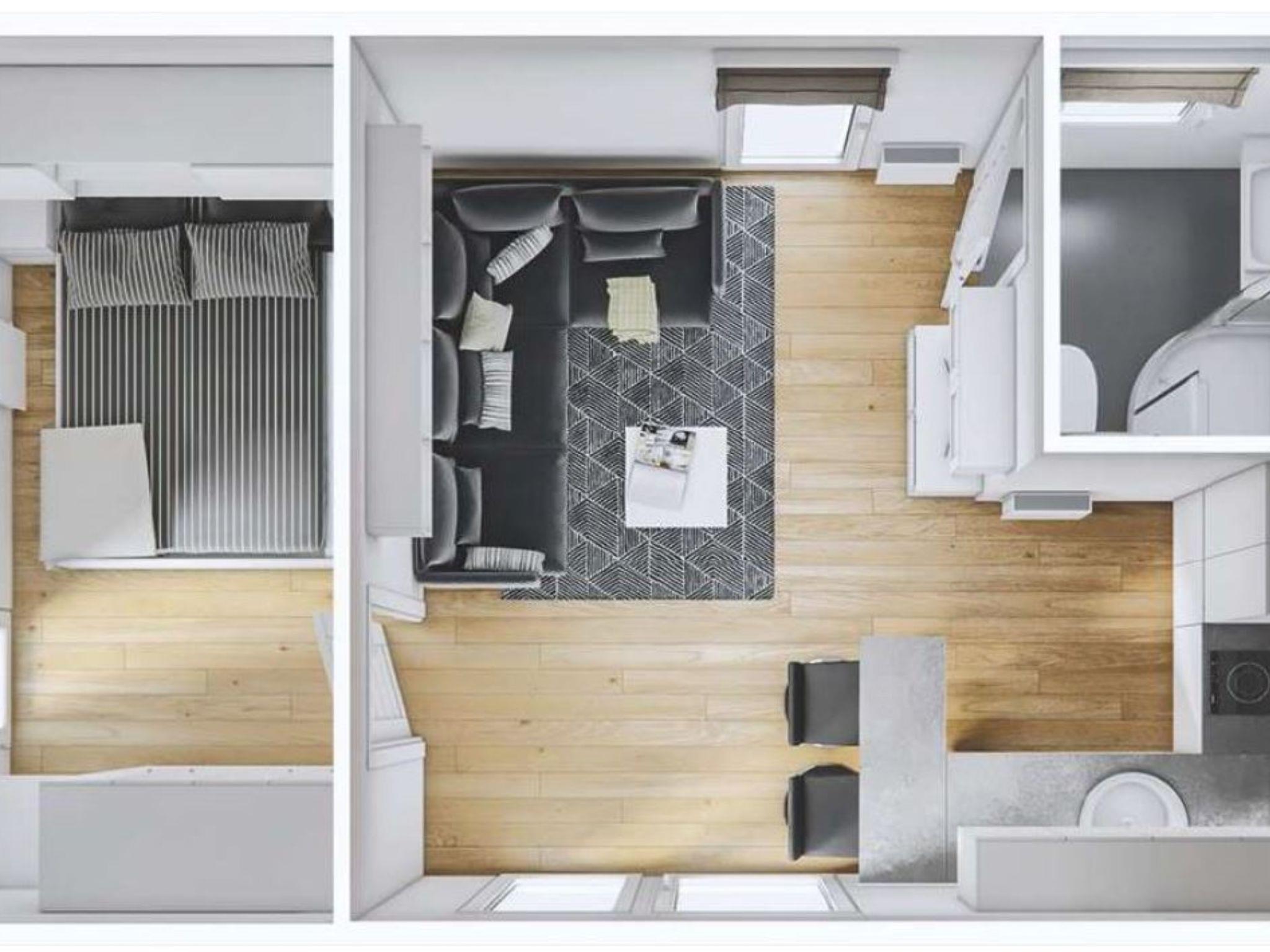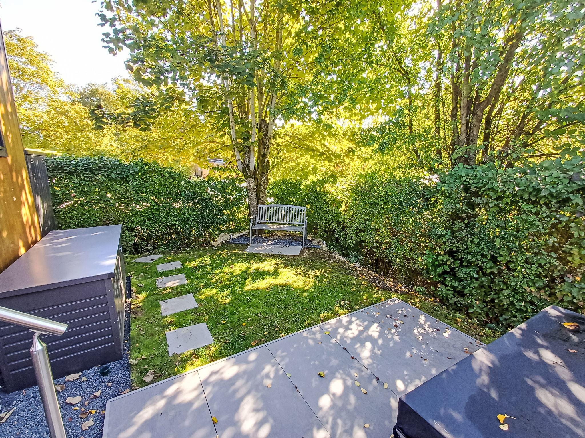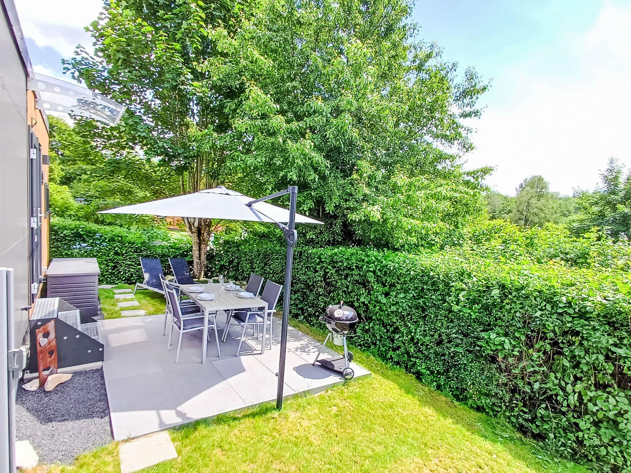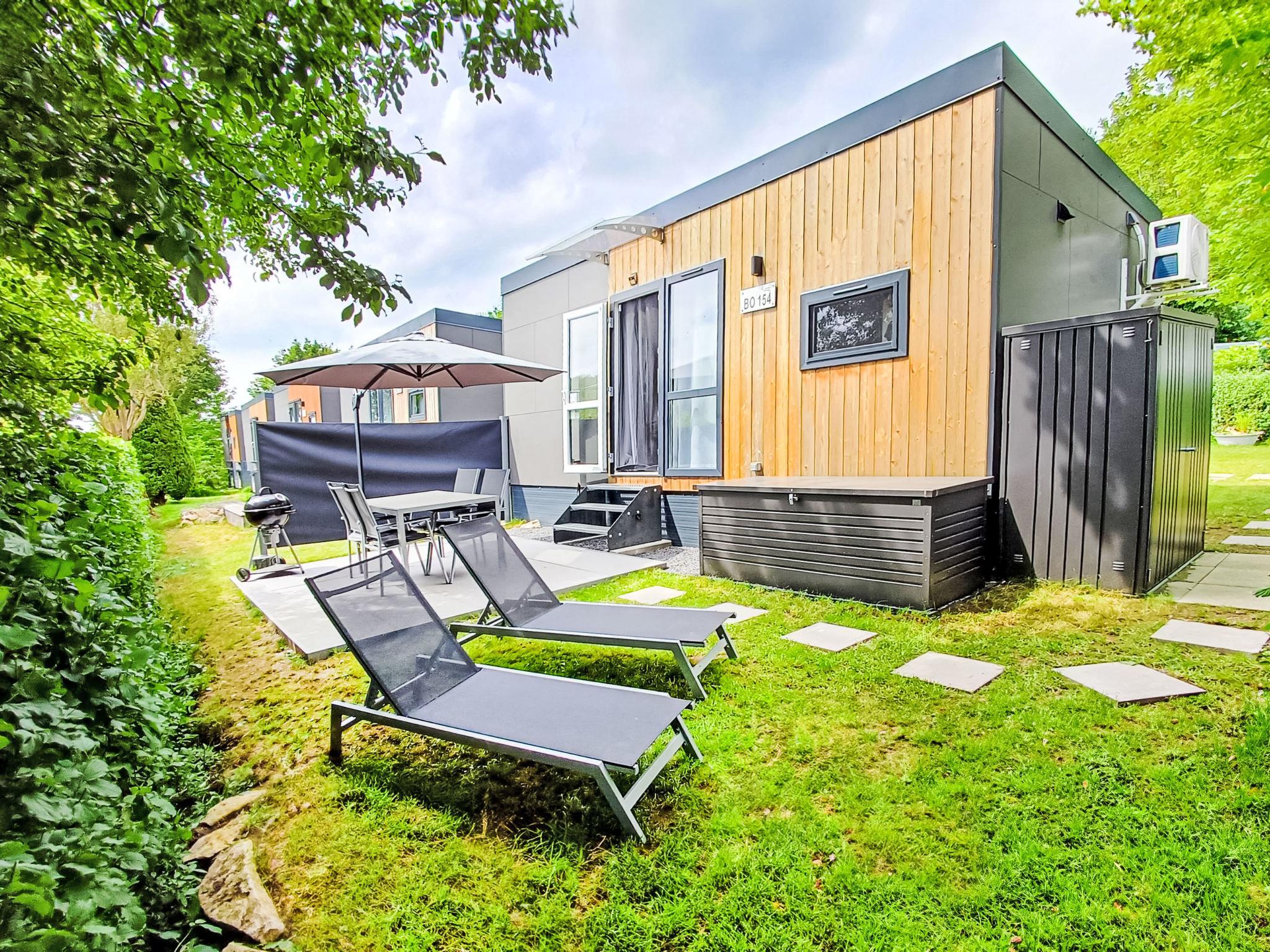 "Tiny Haus am Waldsee", 2-Zimmer-Mobilheim 25 m2. Objekt geeignet für 2 Erwachsene + 2 Kinder. Gemütlich eingerichtet: Wohn-/Schlafzimmer mit 1 Doppeldiwanbett (135 cm, Länge 190 cm), Esstisch und Sat-TV (Flachbildschirm). Ausgang zur Terrasse. 1 Zimmer mit 1 franz. Bett (140 cm, Länge 200 cm). Offene Küche (2 Induktionskochplatten, Toaster, Wasserkocher, Mikrowelle). Dusche/WC. E-Heizung, Klimaanlage. Terrasse. Terrassenmöbel, Gartengrill, Liegestühle (2). Zur Verfügung: Haartrockner. Internet (WLAN, gratis). Parkplatz (1 Auto) in 10 m. Bitte beachten: Nichtraucher-Haus. Rauchmelder. Senseo Kaffeemaschine.
