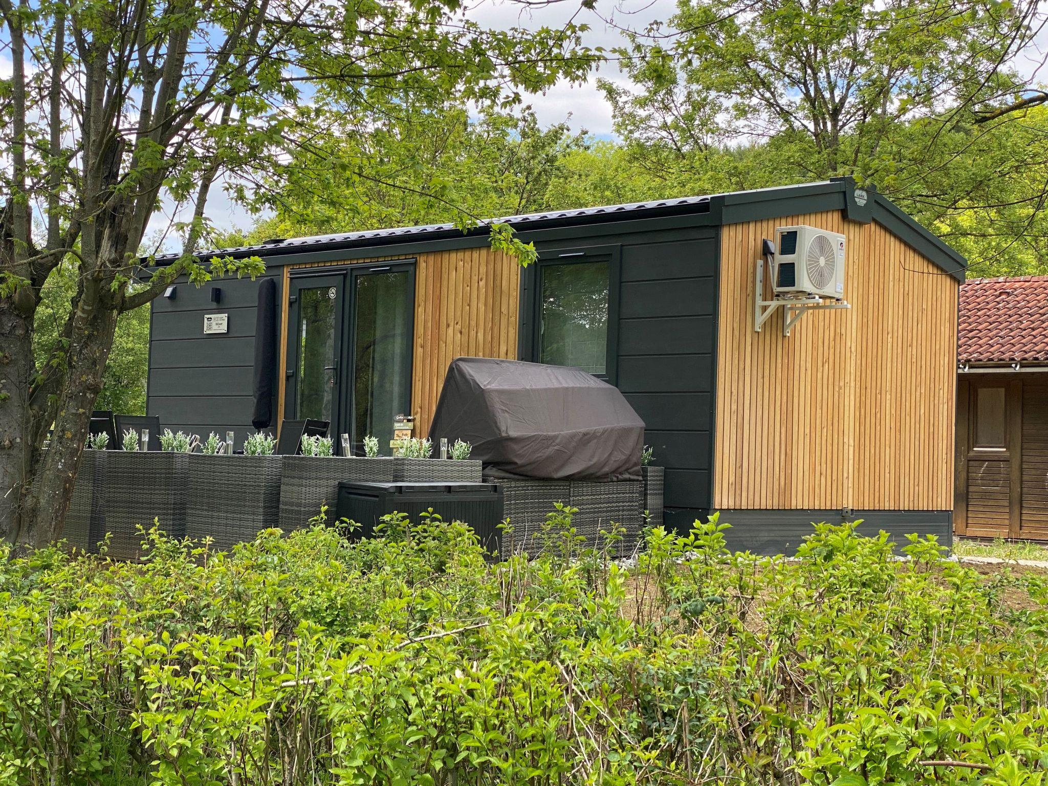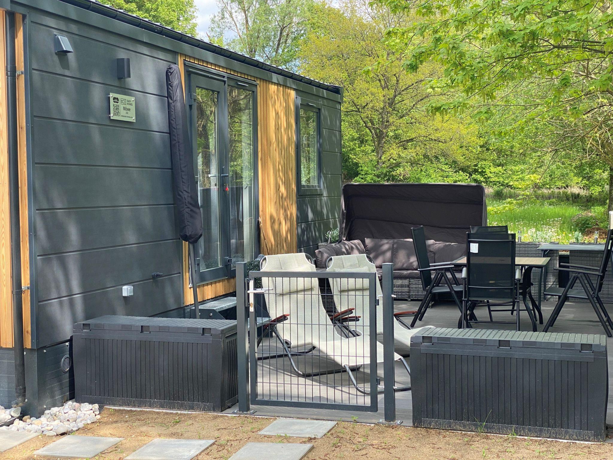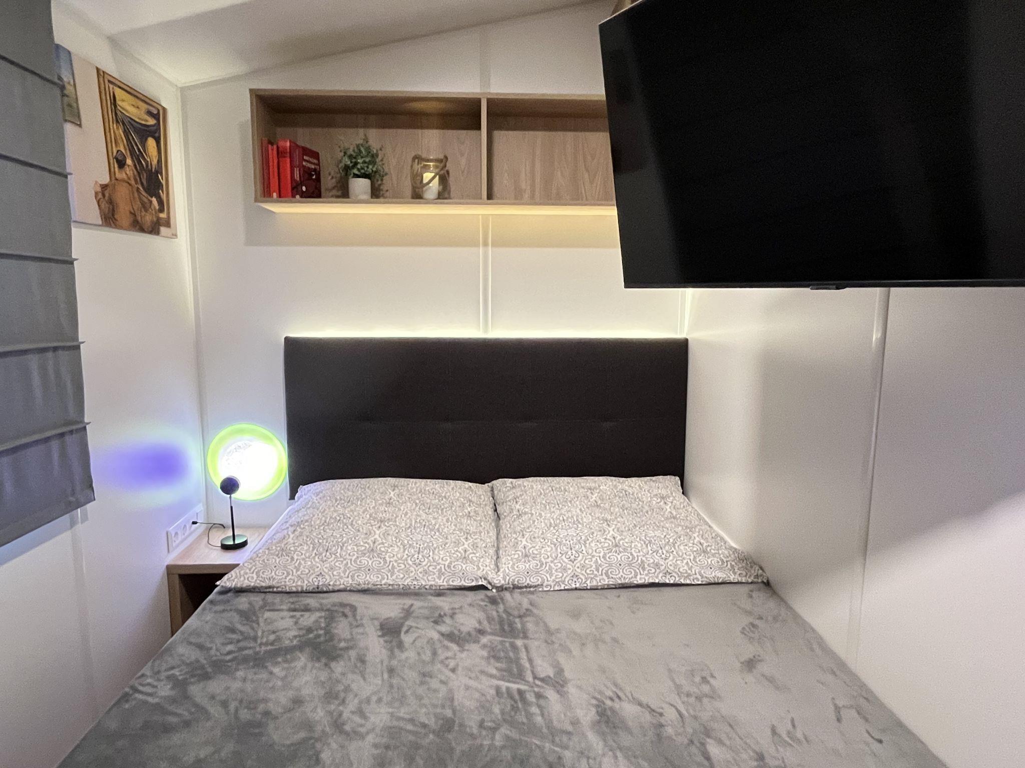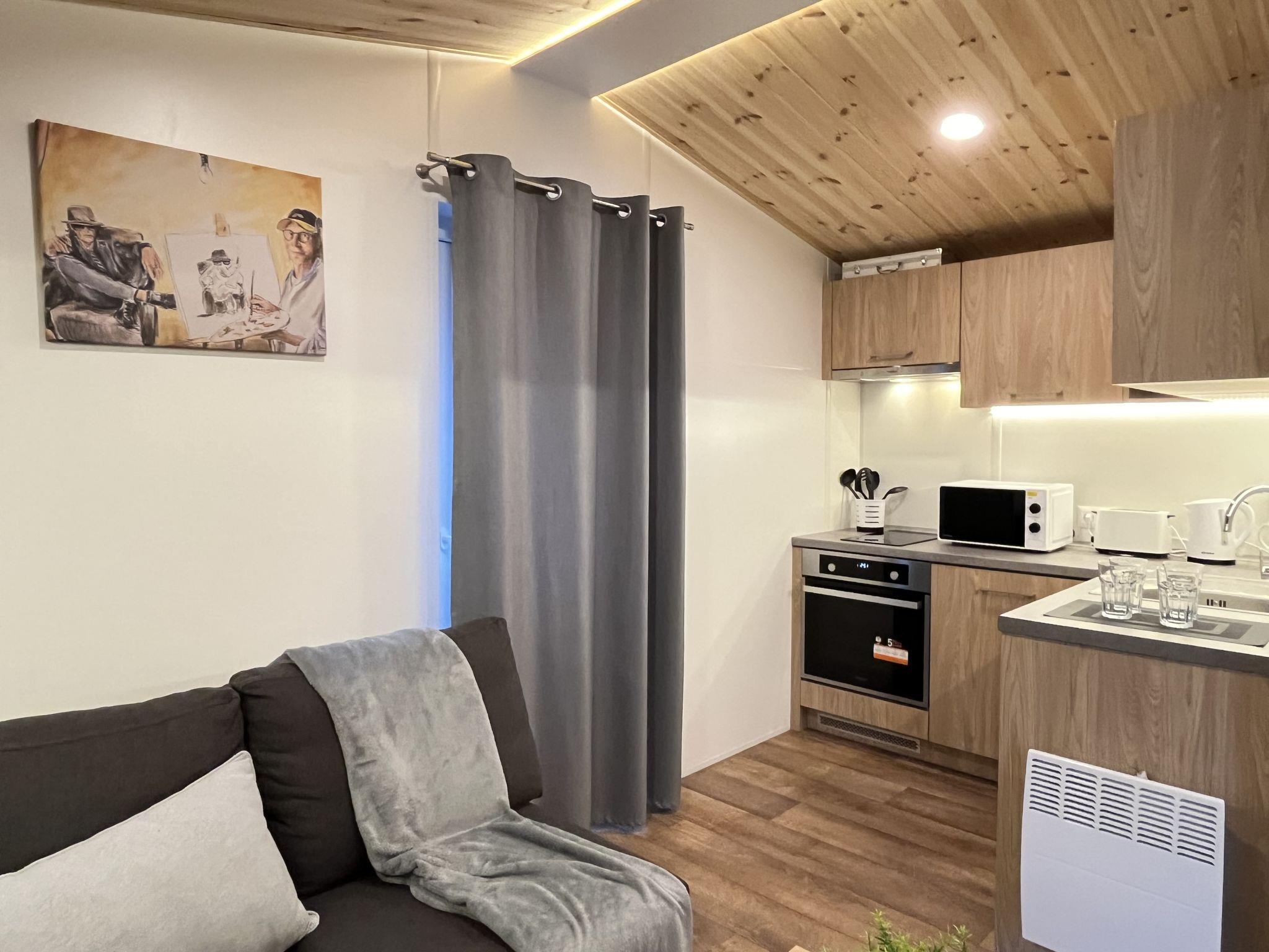 "Tiny Haus Seeblick", 3-Zimmer-Mobilheim 29 m2. Gemütlich eingerichtet: Wohn-/Esszimmer mit Esstisch und Sat-TV (Flachbildschirm). Ausgang zur Terrasse. 1 Zimmer mit 1 Doppelbett (140 cm, Länge 200 cm). 1 Zimmer mit 2 Betten (80 cm, Länge 200 cm). Kochnische (Geschirrspüler, 2 Induktionskochplatten, Wasserkocher, elektrische Kaffeemaschine). Dusche/WC. Terrasse. Terrassenmöbel, Elektrogrill (mobil), Liegestühle (2). Zur Verfügung: Internet (WLAN, gratis). Bitte beachten: Nichtraucher-Unterkunft. Hinweis: Die WLAN-Verbindung kann je nach Kapazität eingeschränkt sein.