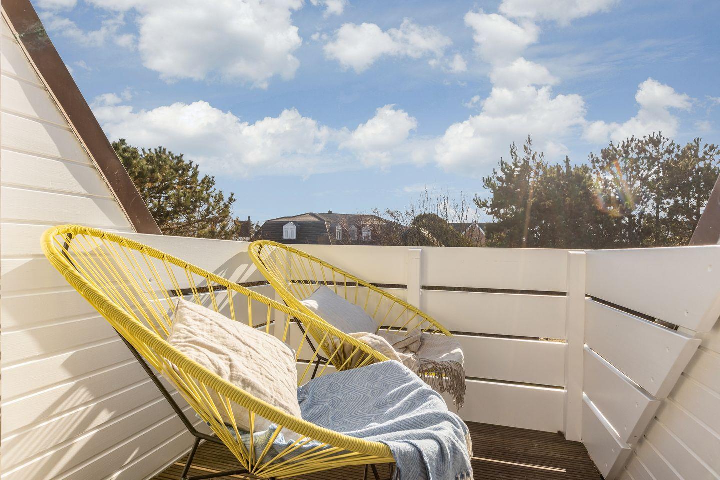Wer einen Wohlfühlort auf Sylt für bis zu vier Personen sucht, wird im Appartement 3 des Feriendomizils in Wenningstedt sicherlich fündig. Die Wohnung befindet sich im Ober- und Dachgeschoss des Hauses und empfängt Sie mit einem großzügigen, hellen Wohnraum und einer offenen Küche. Im Essbereich können Sie sich Ihr Urlaubsfrühstück schmecken lassen und vom Wohnraum aus betreten Sie Ihre beiden - im September 2021 sanierten - Balkone, auf denen Sie es sich gut gehen lassen können. Der Wohnbereich ist mit mehreren Sitzmöglichkeiten sehr gemütlich gestaltet und lädt auch bei „Sylter Schietwetter“ zum Entspannen ein. Auf gleicher Ebene des Appartements befindet sich ein top-modernes Badezimmer mit Dusche, Whirlpool-Badewanne und WC.