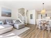OG: Wohnraum mit Flatscreen-TV, W-Lan, Essbereich, offene Küche mit Geschirrspülmaschine, Backofen, Filterkaffeemaschine, Nespressomaschine, Balkon mit Balkonmöbeln, Duschbad