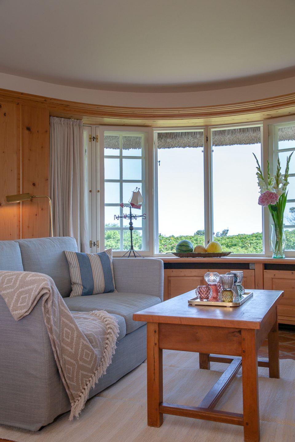 Verbringen Sie verträumte Stunden in Ihrem behaglichen Wohnzimmer, in dem Sie im Winter am Kamin sitzen und den unverstellten Blick auf das Meer genießen können. In diesem Haus wird das Motto „Wertschätzung statt Vergeudung“ großgeschrieben und so bietet Ihnen der leicht separate Küchenbereich – im Sinne der Nachhaltigkeit – eine gelungene Kombination aus hochwertiger Ausstattung und älteren Küchengeräten, durch die sich die Selbstversorgung im Urlaub einfach gut anfühlt.