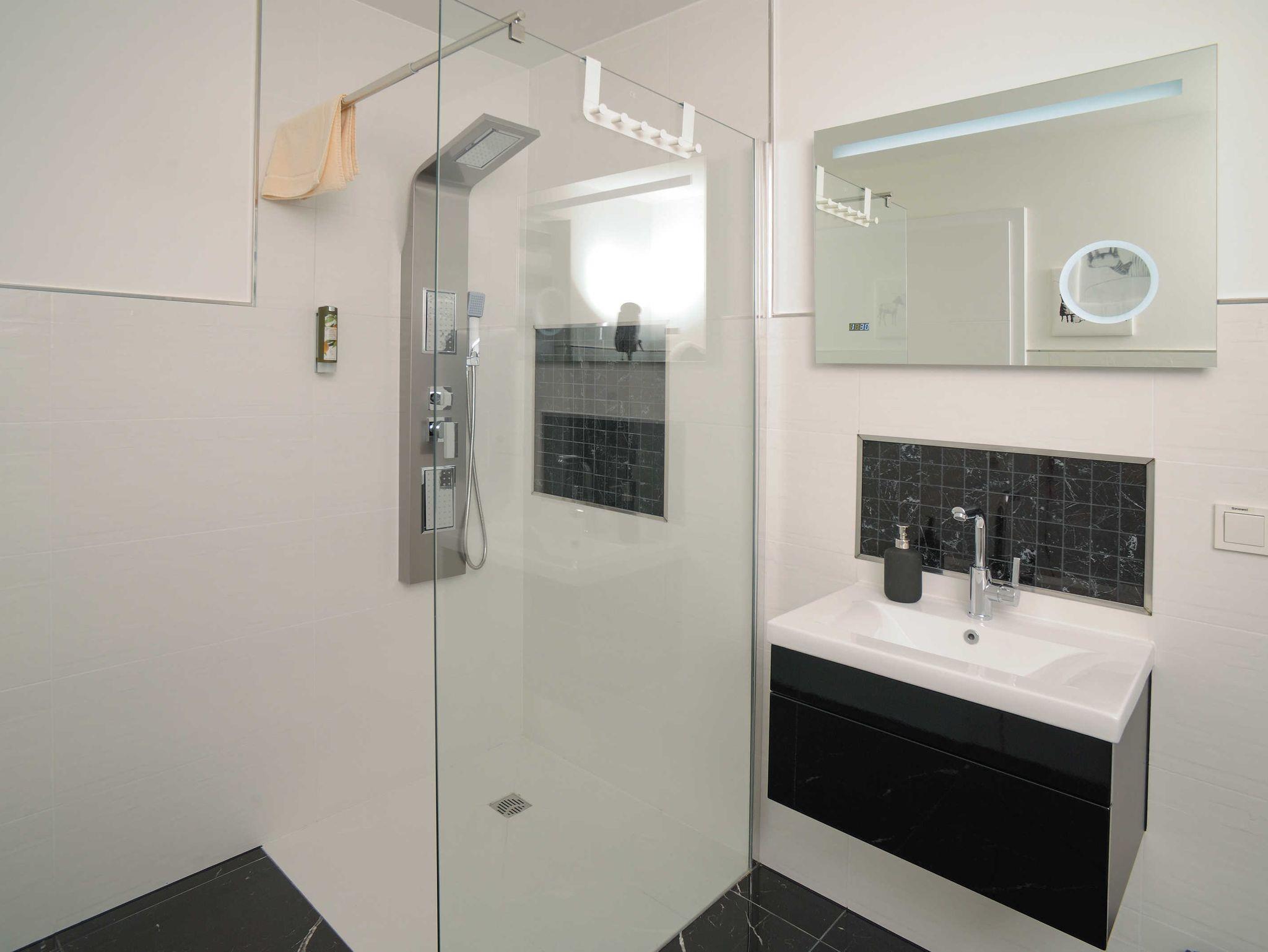 • großes Bad mit Dusche und Wanne sowie einem Dusch-WC