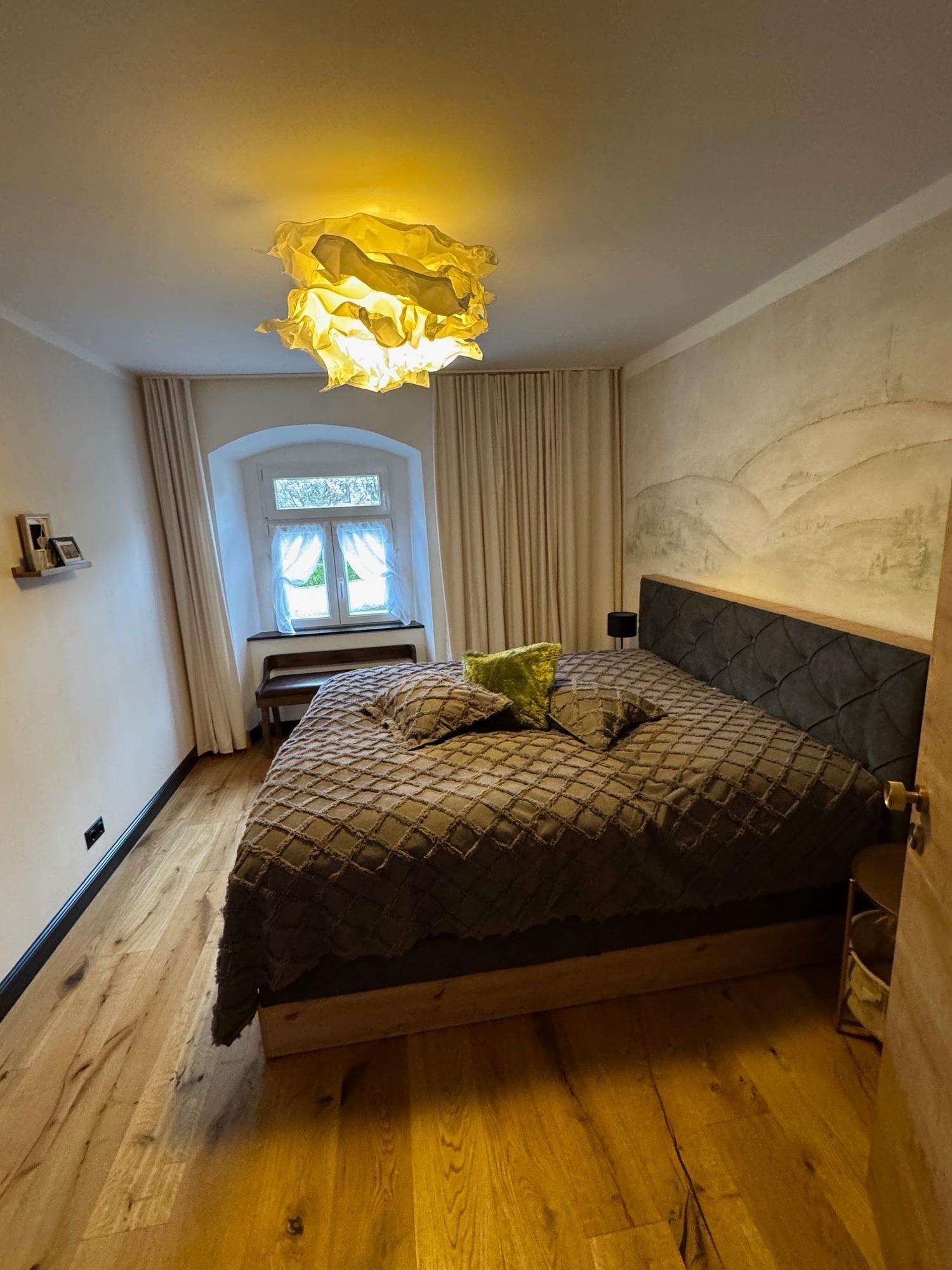 Mit viel Liebe zum Detail und spürbarer Holzliebe gestaltet, verbindet die Suite historischen Charakter der alten Mühle und modernem Komfort. Warme nachhaltige Materialien, ausgewählte Dekoration und eine ruhige Atmosphäre schaffen ein Zuhause zum Ankommen und Wohlfühlen – ideal für Paare oder die ganze Familie.