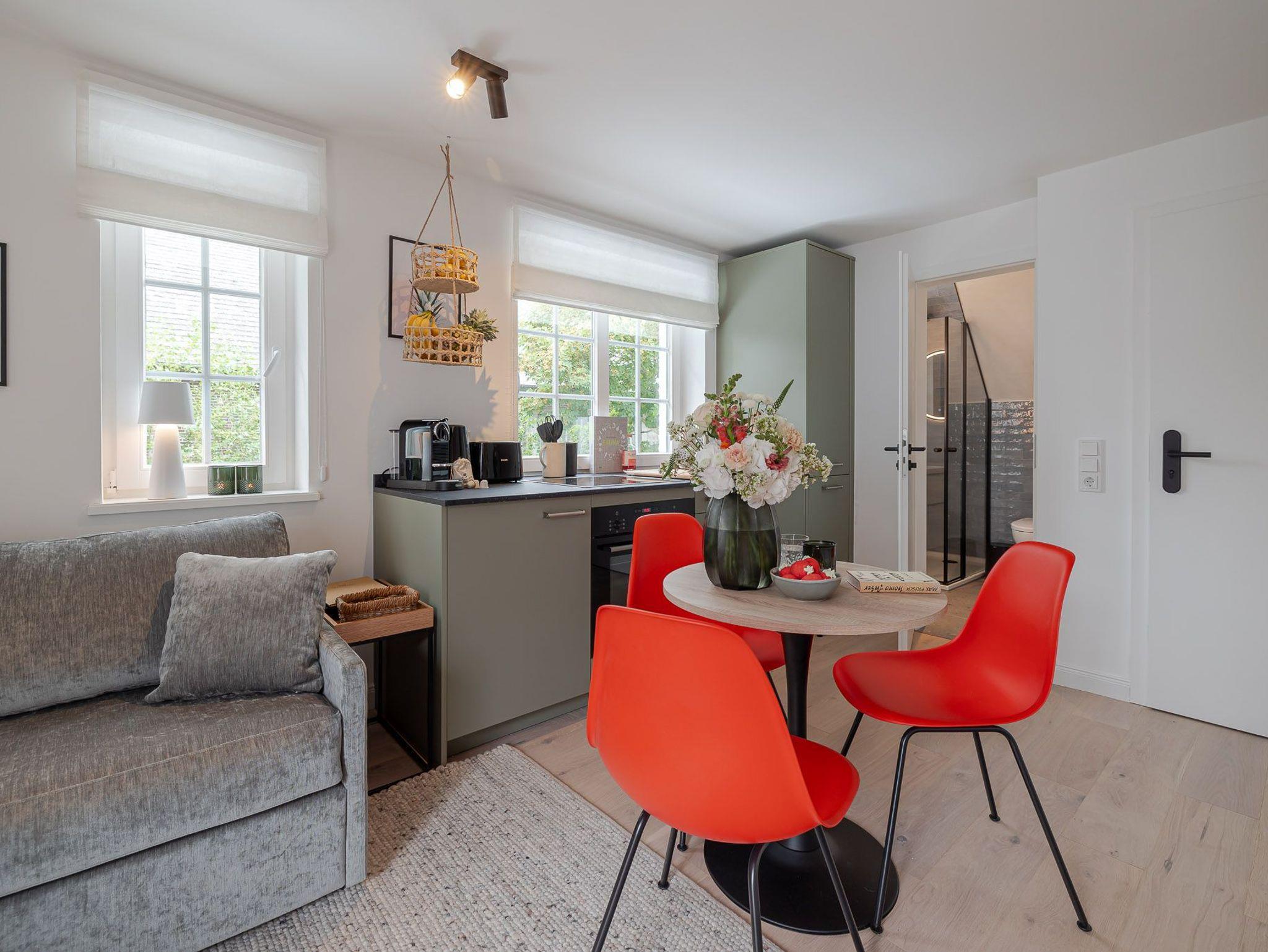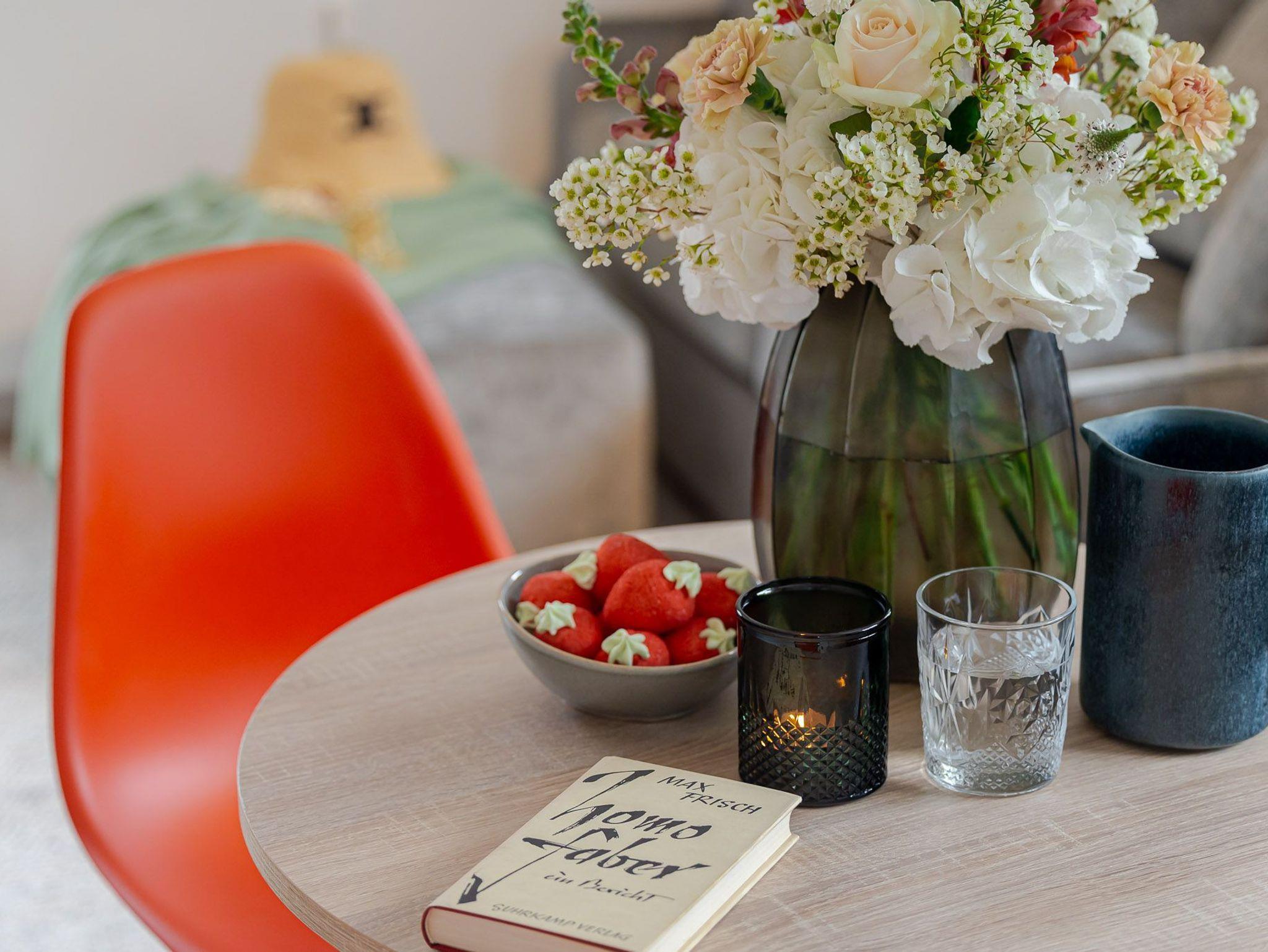 Rechter Hand wird das Thema Kulinarik großgeschrieben, denn die top ausgestattete Küche, u.a. mit Geräten der Firma Miele, bietet alles, was Sie zum Zubereiten Ihrer Mahlzeiten benötigen. Nur das Einkaufen müssen Sie noch selbst erledigen. Tipp: Ein großer Supermarkt ist in nur 5 Minuten zu Fuß erreichbar.