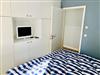 Durch den Flur, mit Zugang zum ersten Bad, erreichen Sie den großzügigen offenen, hellen Wohnraum mit Einbauküche, TV und dem Sofa. Von hier gelangen Sie auf die West -Terrasse von der aus - Sie die Sylter Abendsonne genießen können. Ebenfalls an den Flur angeschlossen befindet sich das sehr liebevoll eingerichtete Schlafzimmer mit einem gemütlichen Doppelbett.