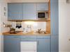 Die ansprechende[nbsp][nbsp]Küchenzeile hat einen kleinen Geschirrspüler, ein Cerankochfeld, eine Bratmikrowelle und einen Kühlschrank mit 3*-Gefrierfach. Kaffeemaschine, Wasserkocher und Toaster gehören zur Grundausstattung.