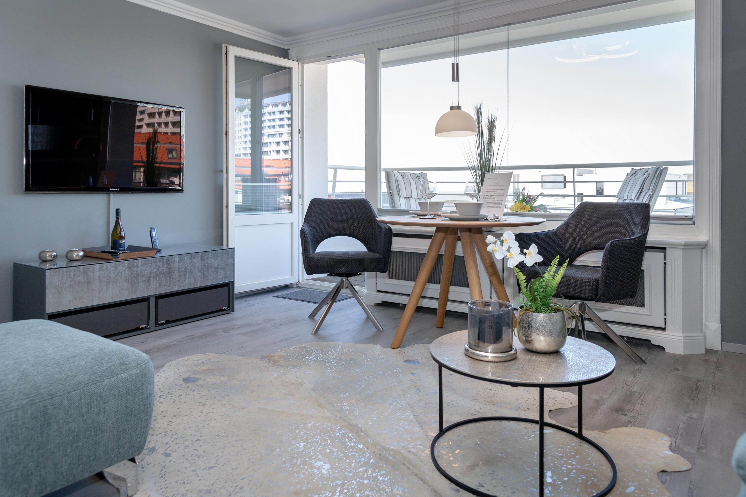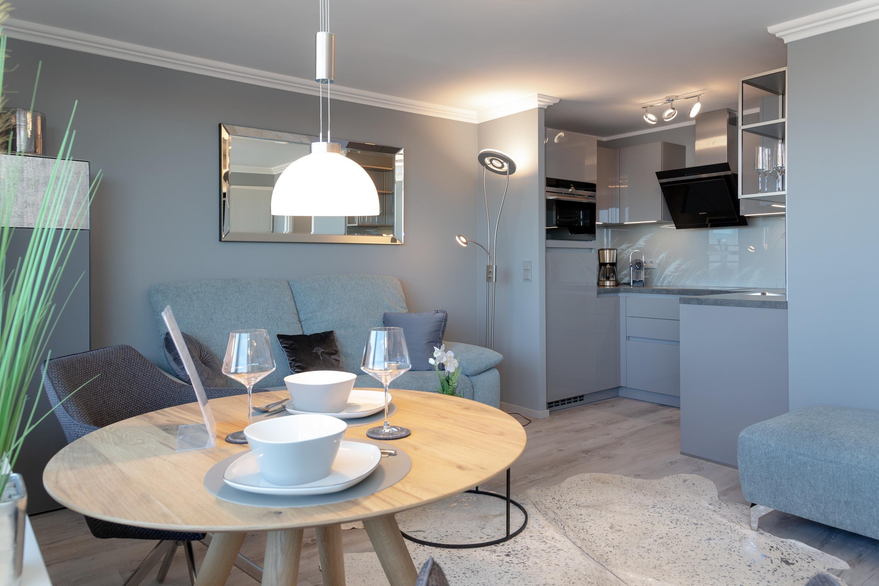 Diese modern eingerichtete Ferienwohnung im 4 Obergeschoss im Haus Sola Bona in Westerland wartet mit einem freundlich hellen Wohn-/Essbereich samt tollem Ausblick vom Westbalkon auf die Nordsee. Ebenfalls verfügt die Wohnung über eine funktional eingerichtete Küche sowie ein Duschbad mit WC. Das gemütliche Schlafzimmer mit Doppelbett verfügt über einen geräumigen Schiebetürenschrank mit LED - Beleuchtung und ein TV ist ebenfalls vorhanden. Ein PKW - Stellplatz steht Ihnen am Haus kostenlos zur Verfügung. Ein Wohlfühl-Quartier für entspannte Tage.