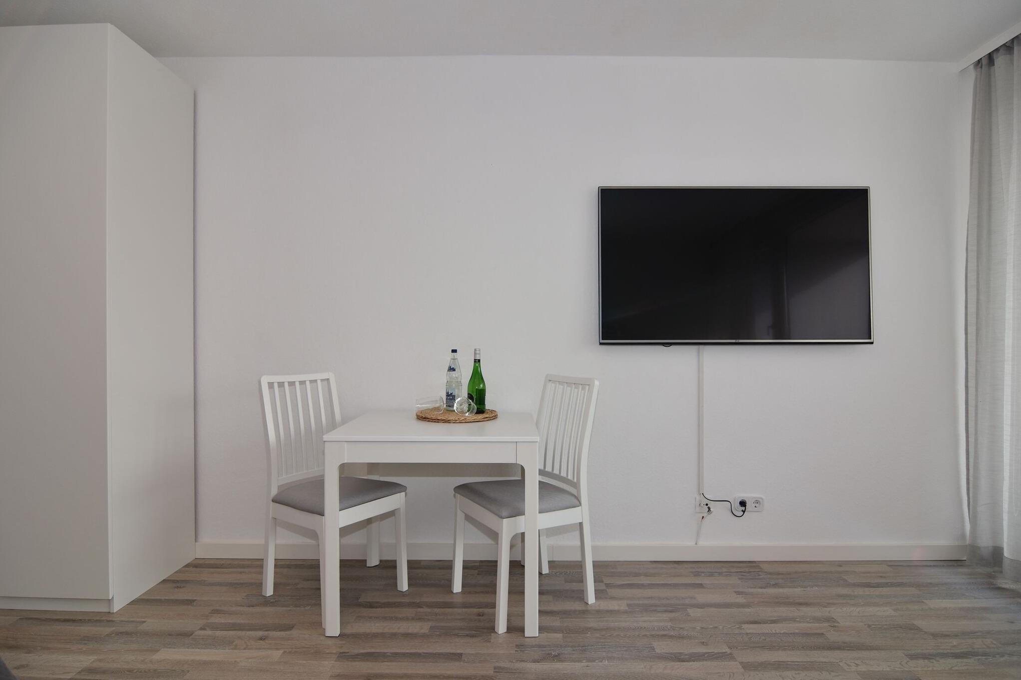 Nur wenige Schritte vom Strand entfernt befindet sich das Haus Strandstrasse 22. Genießen Sie die Vorzüge dieser zentralen Lage - Bäcker, Supermarkt und Strand sind nur einen Katzensprung entfernt. Die helle Wohnung verfügt über einen geräumigen Wohn-/ Schlafraum mit Doppelbett (180x200, 2 Matratzen), Sitz- und Essecke sowie einem großen Südbalkon. Im Flurbereich der Wohnung befindet sich die Küchenzeile mit Ceranherd, Kühlschrank und Geschirrspüler. Ein modernes und frisch saniertes Duschbad/WC überzeugt mit einer großen Dusche und hübschen Waschtisch - ein Föhn ist vorhanden. Die Wohnung ist durch Ihren Designboden auch für Allergiker geeignet, Tierhaltung und Rauchen sind in der Wohnung nicht gestattet. Im Haus befindet sich eine Waschküche mit Münz-Waschmaschine und -trockner. Bettwäsche und Handtücher sind zur Anreise aufgezogen. Ein Stellplatz kann nach je Verfügbarkeit kostenpflichtig im Kurzentrum (ca. 150m Entfernung) dazu gebucht werden.