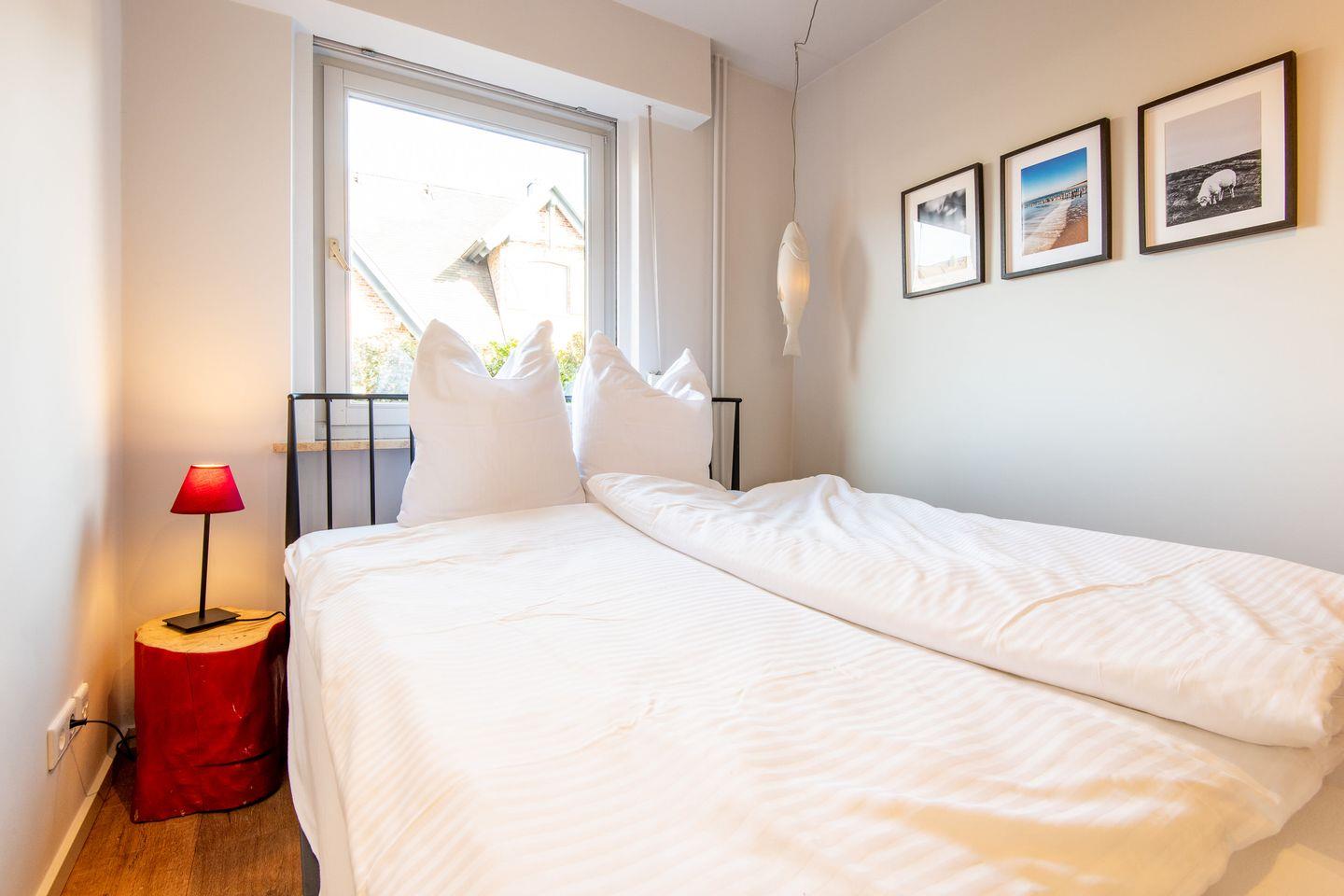 Diese gemütlich eingerichtete ca. 85 m² große Ferienwohnung für bis zu 6 Personen befindet sich in einer direkten Strandlage von Westerland. Es erwartet Sie ein liebevoll eingerichtetes Wohn- und Esszimmer mit angeschlossener Küche. Die Küche samt Geschirrspüler ist gut ausgestattet. Die Ferienwohnung verfügt über ein Doppelschlafzimmer (180 cm) mit angeschlossenem Bad en Suite, einem kleinen Schlafzimmer mit französischem Doppelbett (140 cm) sowie einem Schlafzimmer mit Doppelbett (160 cm). Die zwei Badezimmer verfügen über eine moderne Regenwalddusche sowie Tageslicht. Kostenloses WLAN, eine Waschmaschine sowie ein Wäschetrockner stehen Ihnen zur Verfügung. Haustiere sind willkommen. Für Ihr Auto besteht eine öffentliche Parkmöglichkeit direkt am Grundstück auf der Uthlandstraße. Be- und Entlademöglichkeiten gibt es direkt in der Einfahrt.