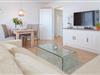 Großer, heller Wohnraum mit Leder-Eckcouch. Großer Esstisch für 4 Personen, Sideboard, Vitrine, Flat-TV und Radio. Ein großer, geschützter Balkon zum Süden lädt zum Sonnenbaden ein. Großes Schlafzimmer mit Boxspringbett (180x200) und geräumigem Kleiderschrank. Flat TV.