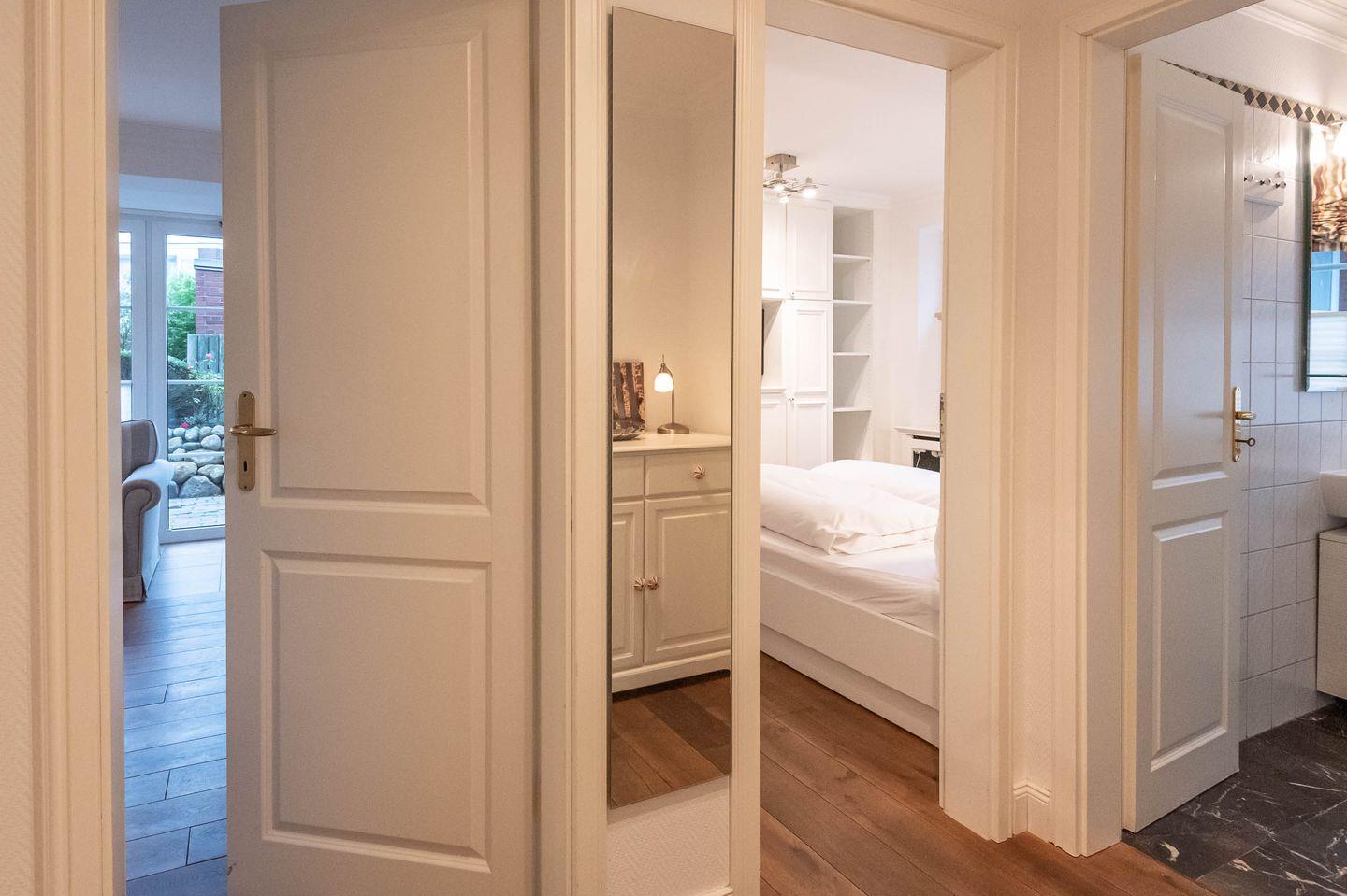 Im Erdgeschoss gelangen Sie über einen großzügigen Hausflur in die Wohnung. Im Wohnungsflur befindet sich eine Kommode mit Garderobe.