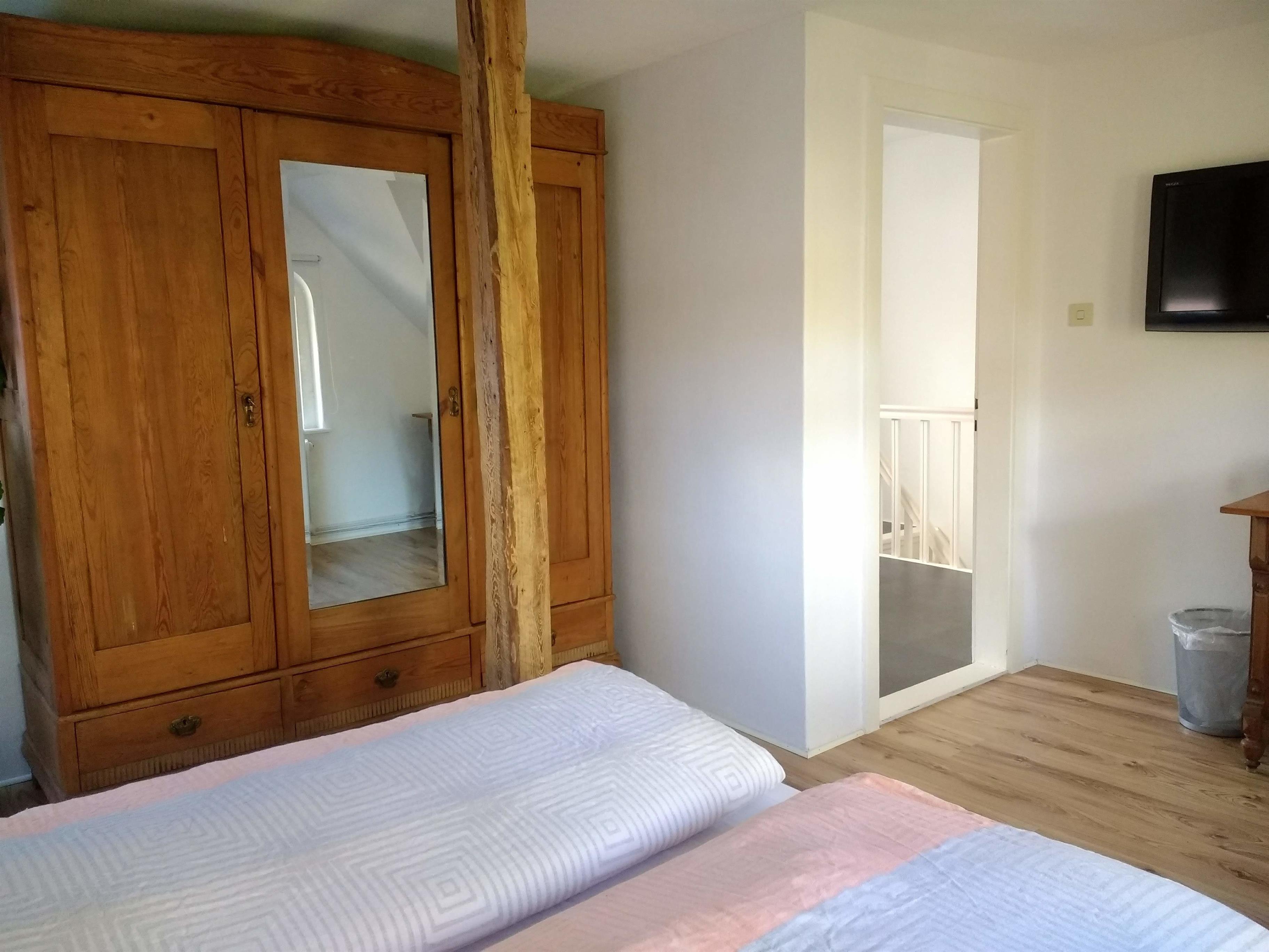 OG: 1 x Schlafzimmer mit zwei Einzelbetten, 1x Schlafzimmer mit Doppelbett , 1 x Badezimmer mit Dusche und WC.