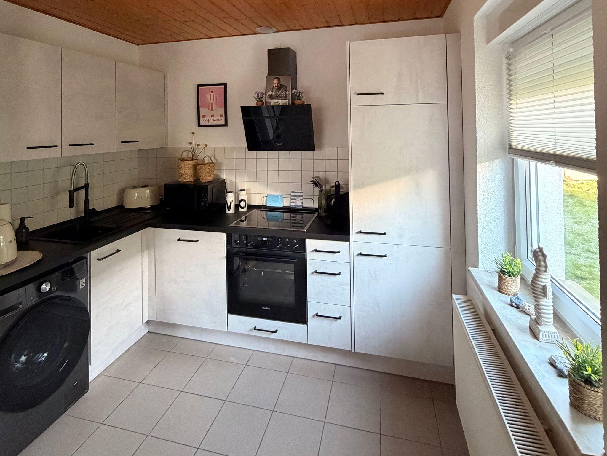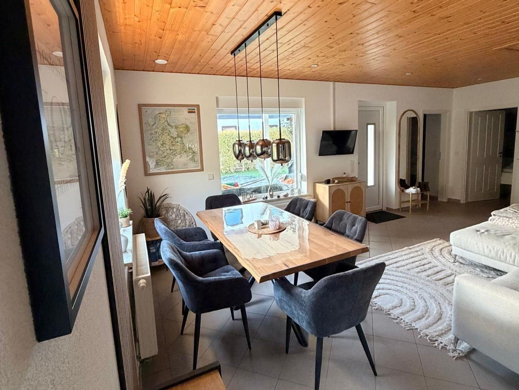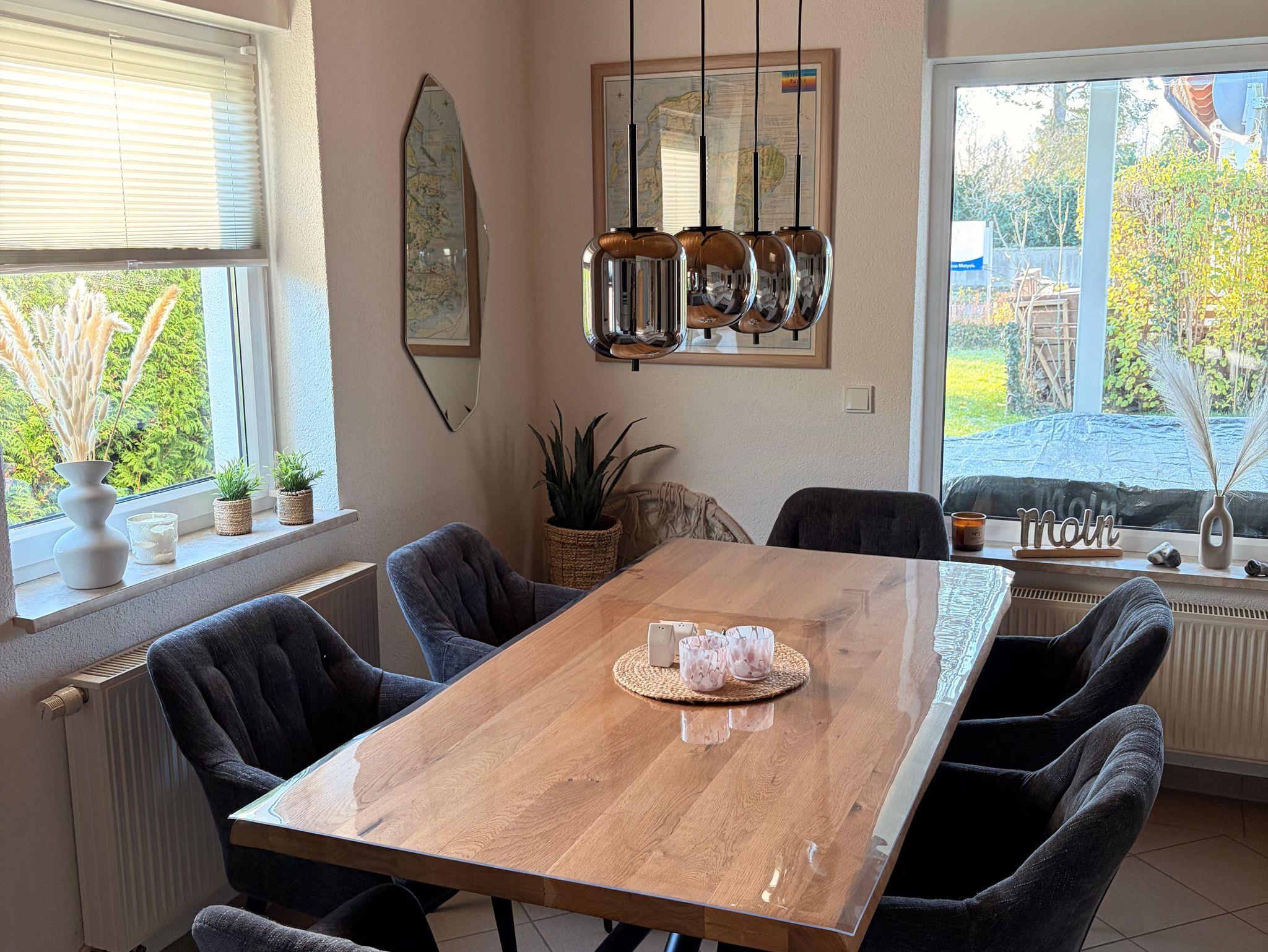 Der offen gestaltete Wohn- und Essbereich ist lichtdurchflutet und bildet den zentralen Treffpunkt des Bungalows. Hier lädt eine angenehme Wohnatmosphäre zum gemeinsamen Entspannen, Essen und Verweilen ein. Die neuwertige, moderne Küche ist vollständig ausgestattet und bietet alle Extras, die unsere Gäste für einen komfortablen Aufenthalt benötigen, ideal sowohl für das schnelle Frühstück als auch für gemütliche Kochabende.