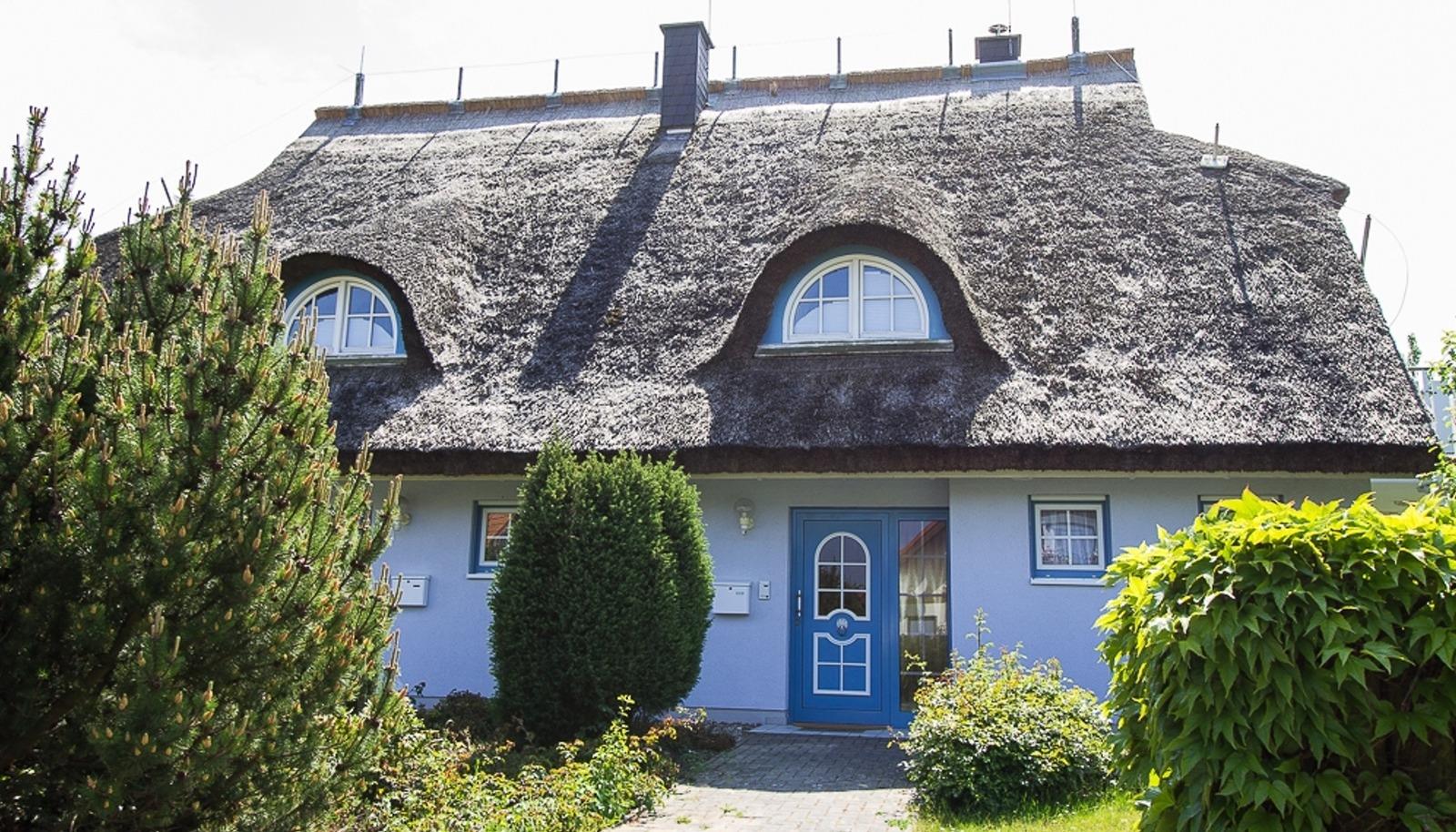Entspannen Sie in der reetgedeckten Doppelhaushälfte Große Freiheit in Wiek, nahe dem Wieker Bodden und ideal für Naturliebhaber.