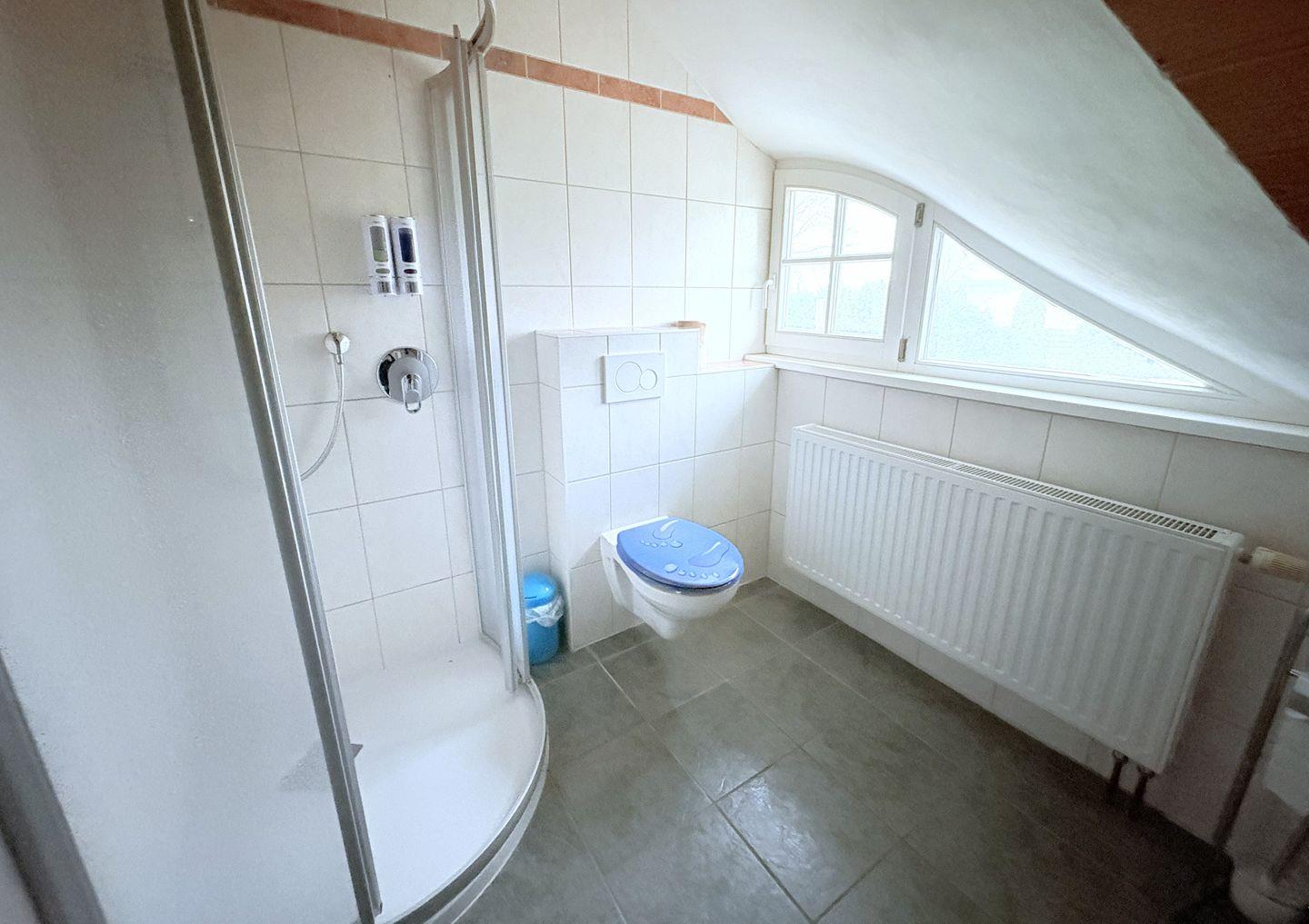 Das geräumige Badezimmer bietet eine Dusche, Waschbecken, WC und eine Waschmaschine. WLAN, Zentralheizung und ein eigener Pkw-Stellplatz sind ebenfalls vorhanden.