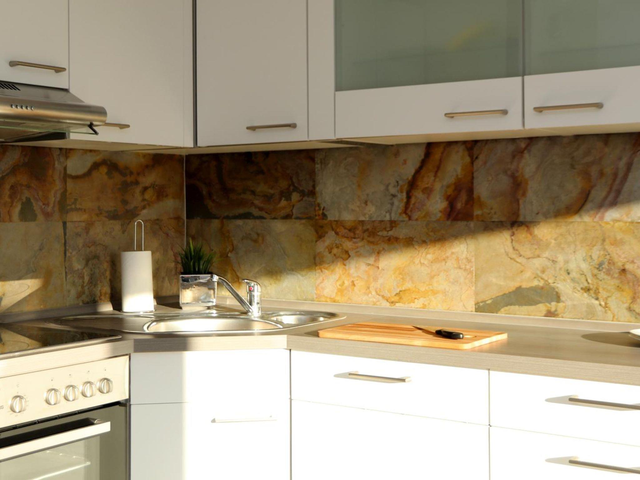 Die Küchenzeile ist mit einem Kühlschrank mit Gefrierfach, Backofen, Herd und Geschirrspülmaschine ausgestattet. Küchenwäsche ist inklusive.