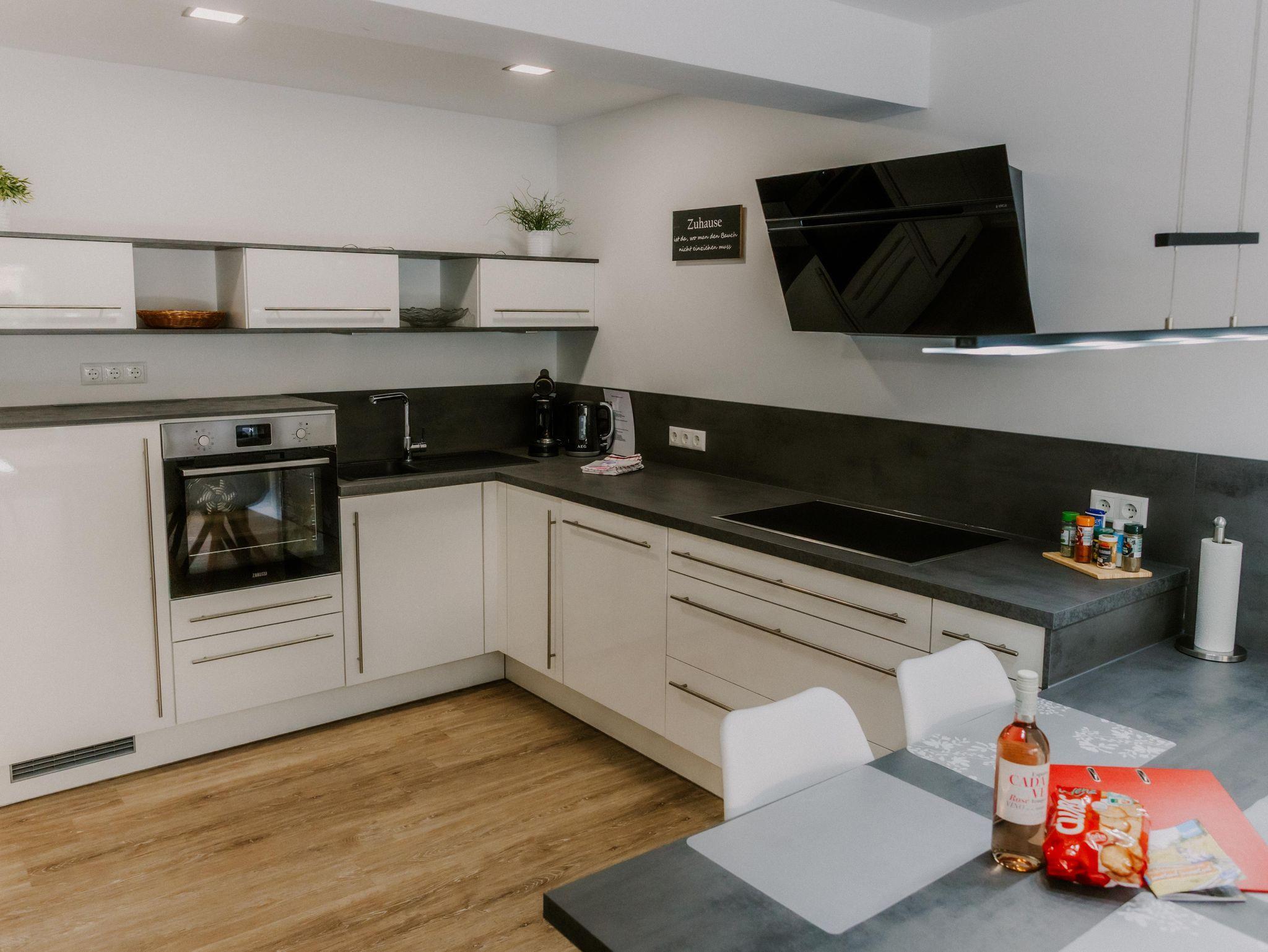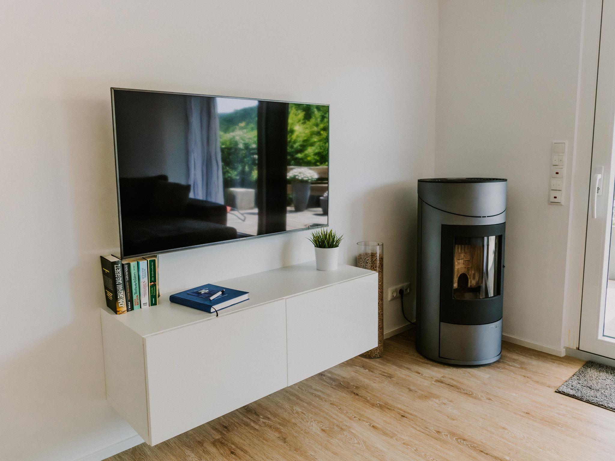 Der helle Wohn- und Essbereich lädt zum Verweilen ein – sei es bei einem guten Buch vor dem wärmenden Pelletofen oder bei einem gemeinsamen Essen in der komplett ausgestatteten Küche. Moderne Infrarot-Wärmeplatten sorgen für ein angenehmes Raumklima.
