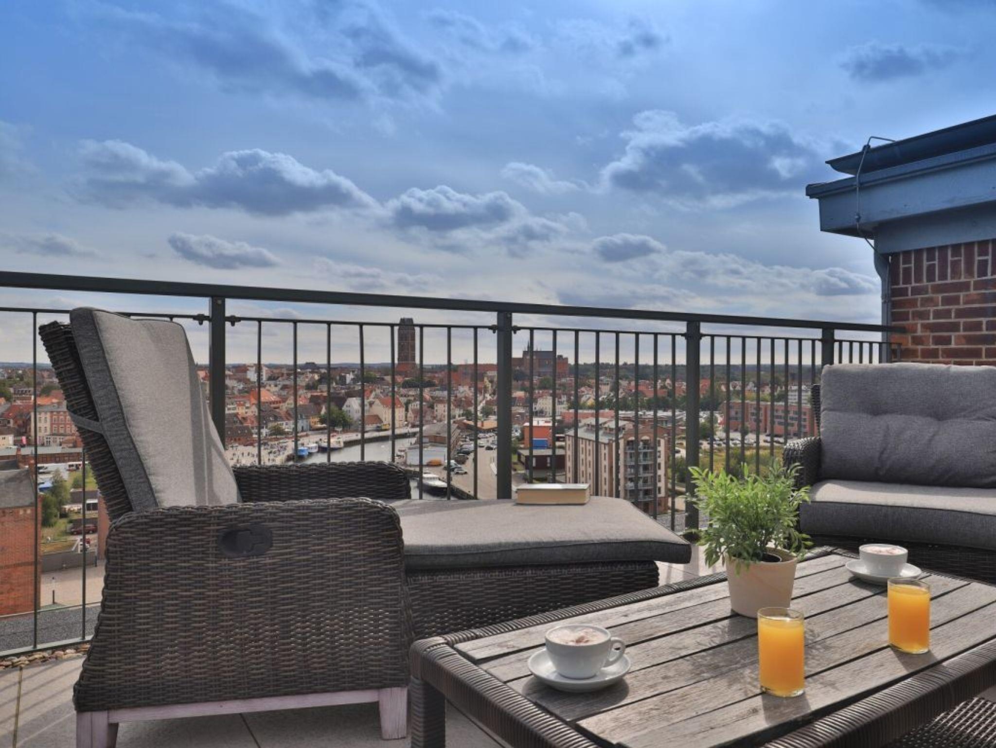 Luxuriöses Penthouse-Appartement mit Meerblick und Dachterrasse am Wismarer Hafen.