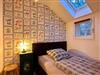 Kuscheliges Schlafzimmer mit komf. Boxspring Bett (Breite 140 cm, Länge 190 cm), Dachfenster.