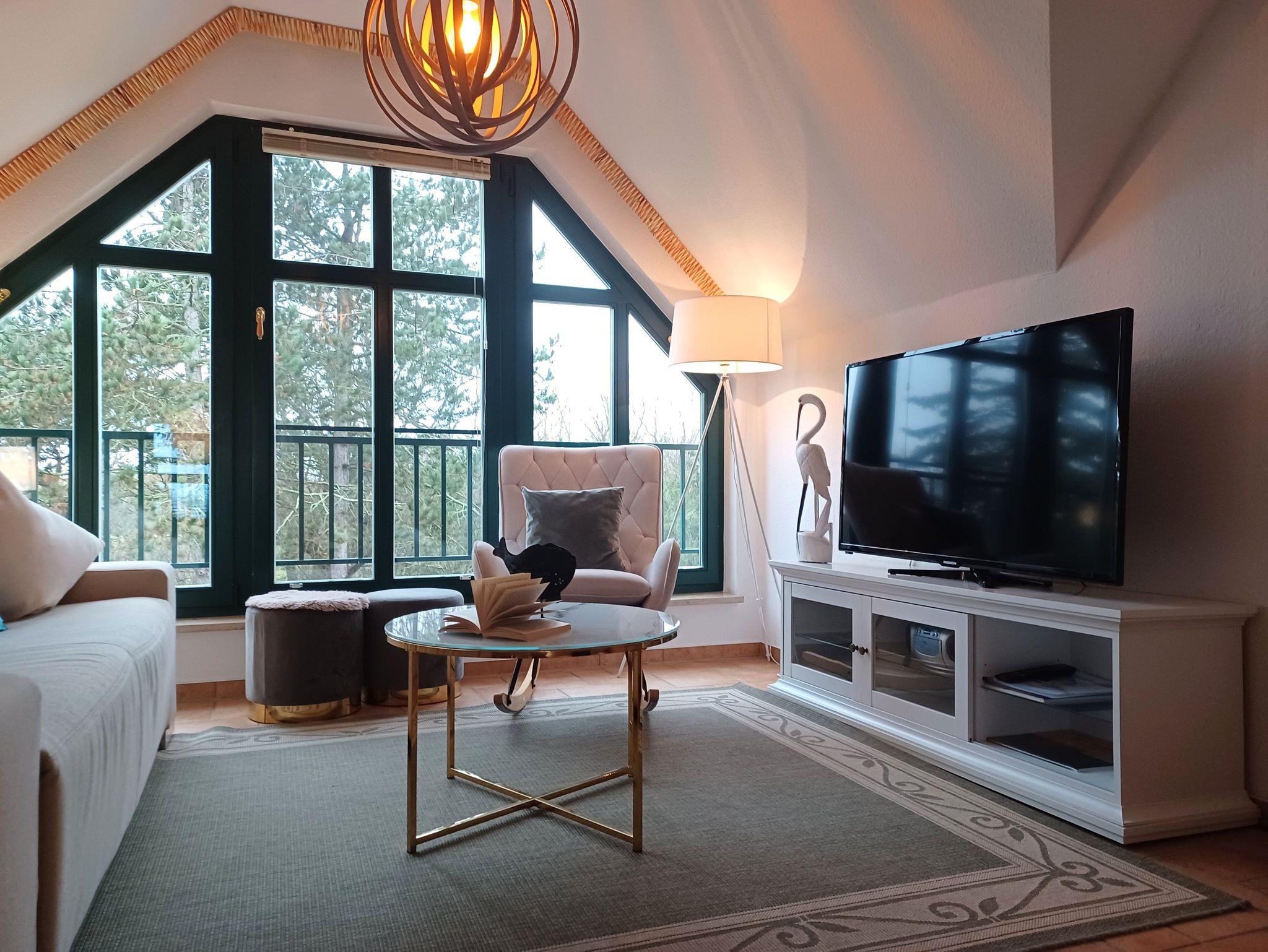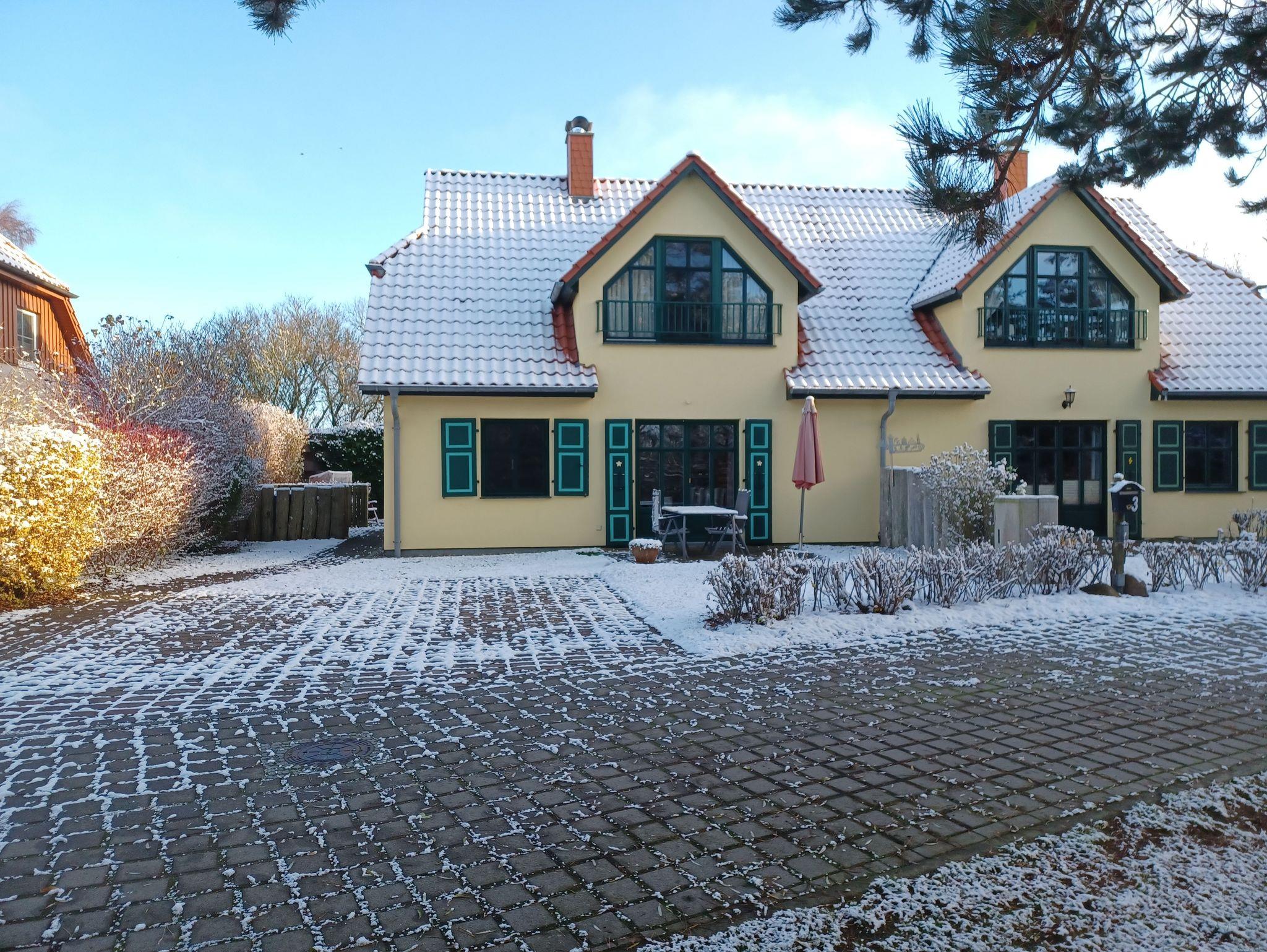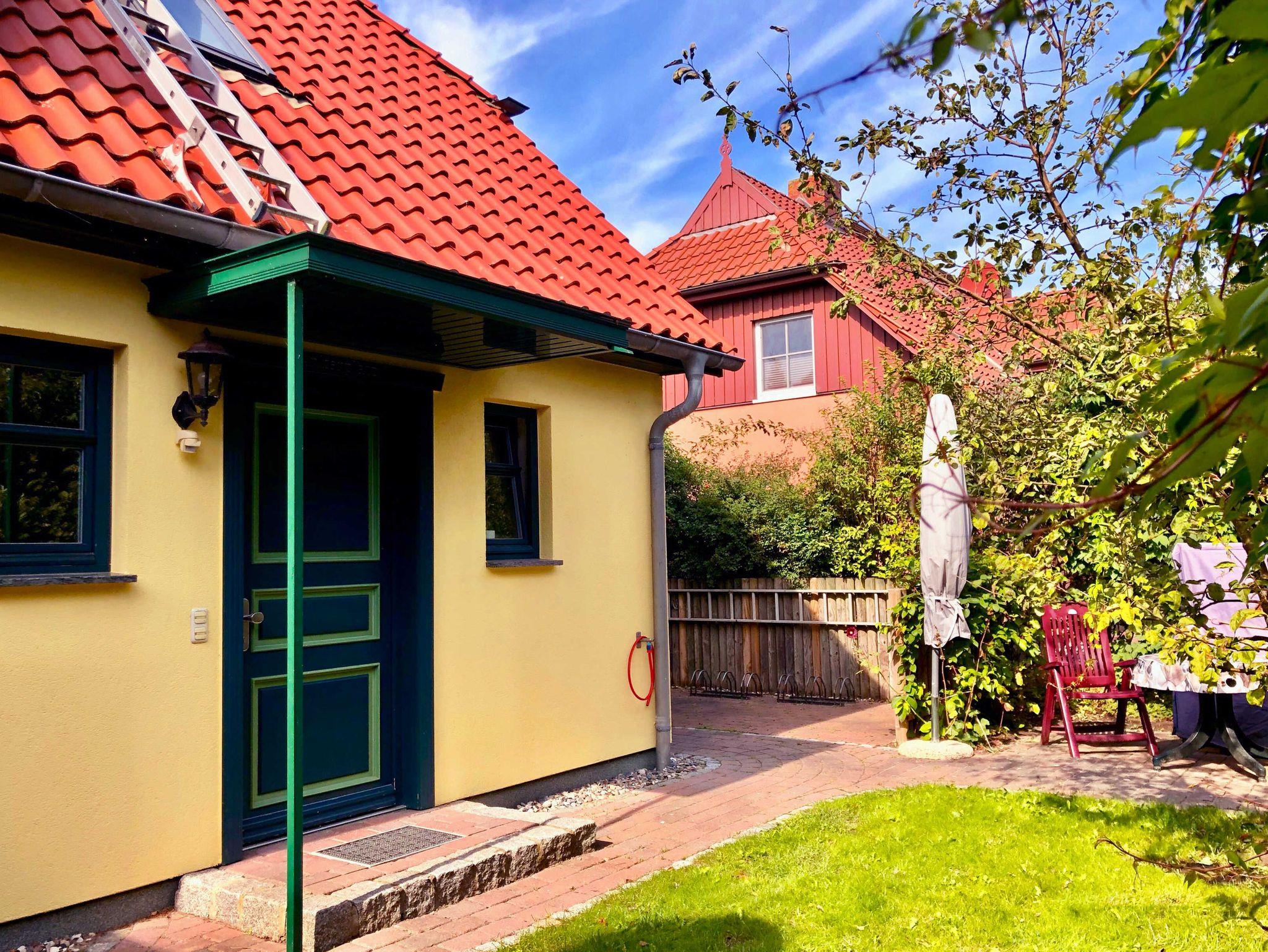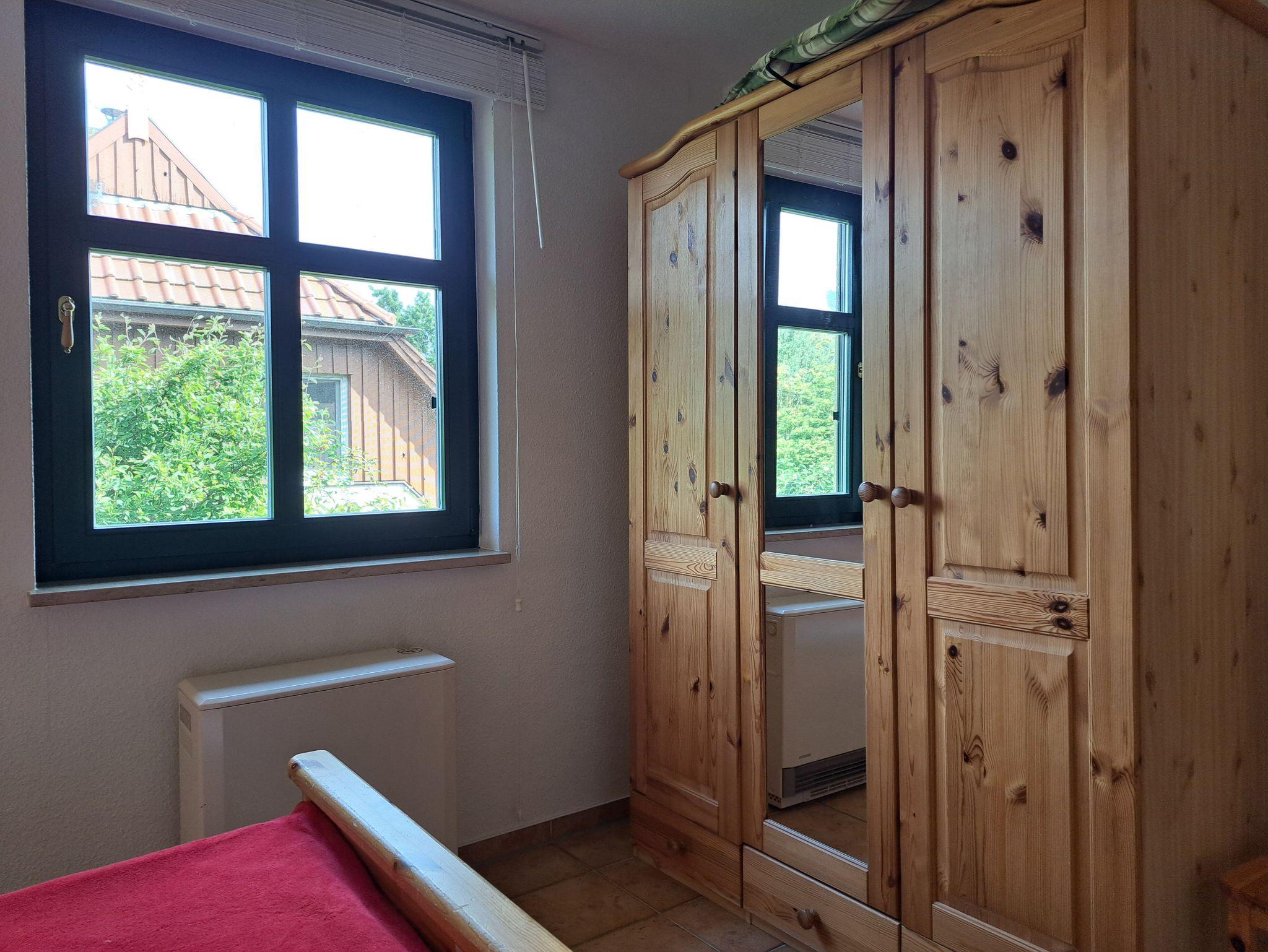 Das Wohnzimmer wurde ausgestattet mit einem Kamin, (das Kaminholz ist von den Gästen mitzubringen). einer Couch und SAT- TV . Alle Wohnungen sind Nichtraucherwohnungen. In der offenen Küchenzeile befinden sich ein Backofen und Geschirrspüler, sowie umfangreiche Küchenutensilien. Für unsere kleinen Gäste können Sie Kinderreisebett und Kinderhochstuhl à 10,00 € /pro Woche dazubuchen. Für die nächtliche Ruhe steht Ihnen 1 Schlafzimmern mit 1 Doppelbett 1,80 x 2,00 m (getrennte Matratze) zur Verfügung. Im Schlafgiebel befindet sich eine weitere Schlafgelegenheit mit einem Doppelbett. Der Schlafgiebel mit einer Stehhöhe von ca. 1,65 m ist über eine ausziehbare Treppe zu erreichen und ist nur für Kinder ab 6 Jahre geeignet. Die Bettwäsche und Handtücher können bei der Zimmervermittlung dazugebucht werden - ein Paket 19,50 € (1 Badetuch, 1 Handtuch, 1 Kopfkissen, 1 Bezug und 1 Spannbettlaken). Ein WLAN Gästezugang steht Ihnen während Ihres Aufenthaltes kostenlos zur Verfügung. Zum gemütlichen Verweilen lädt die Terrasse mit Strandkorb ein. Ein Parkplatz befindet sich auf dem Grundstück. Haustiere sind herzlich willkommen. Die Ferienwohnung wurde mit einer Elektroheizung ausgestattet.