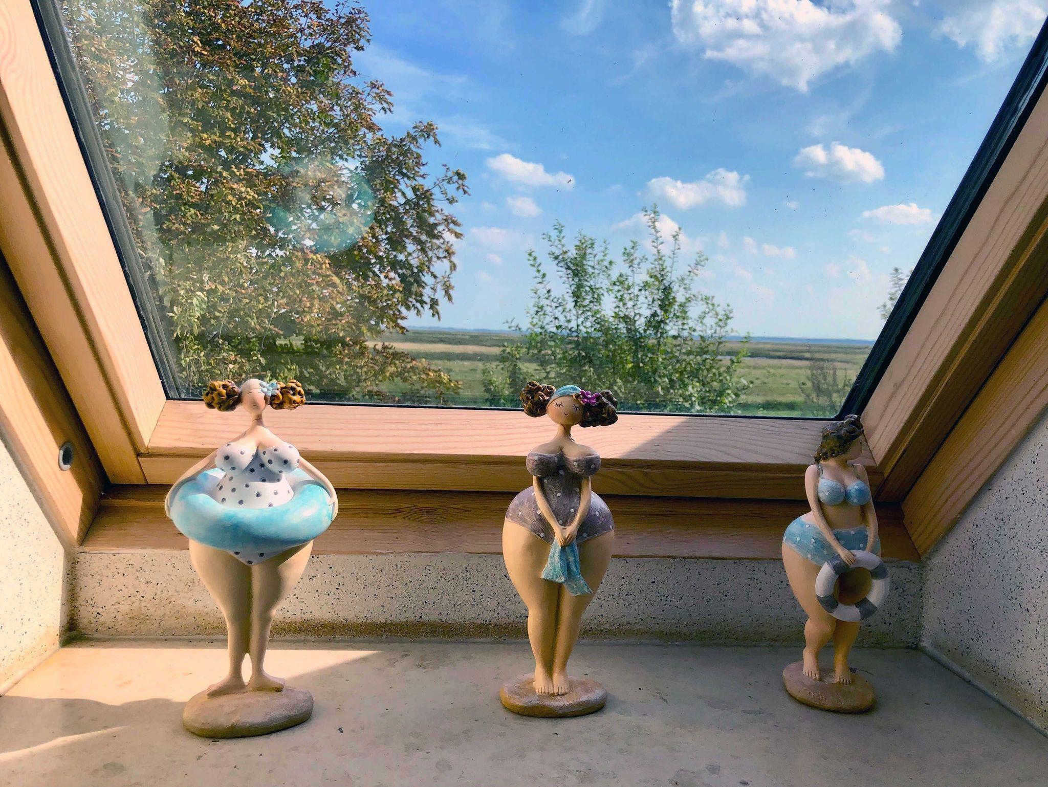 in der Ferienwohnung Strandhaus am Deich im Obergeschoss , in einer Doppelhaushälfte direkt hinter dem Deich mit Strandzugang.